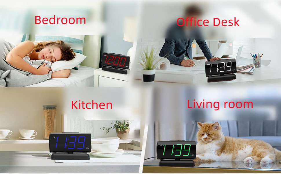 GING YHAU alarm clock large digital rotary base, 2-level alarm sound, 2-level brightness digital clock bedroom, easy to read, bedside alarm clock, 12H format, socket power supply