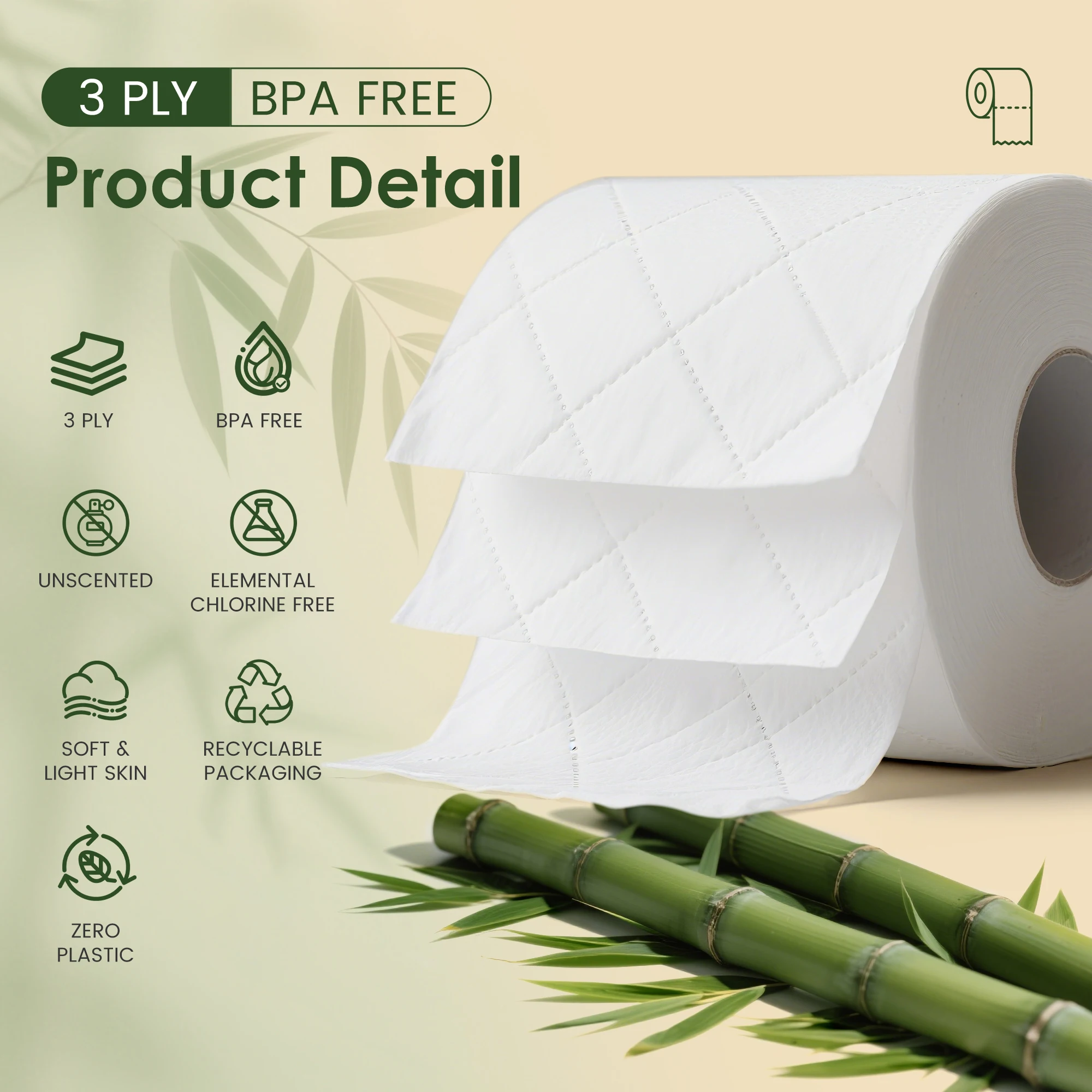 Natural Bamboo Pulp, Soft & Skin-Friendly: Crafted from selected bamboo pulp, our tissue has a naturally gentle white color. Its soft and smooth texture provides comfortable daily use for the whole family, delivering a fresh, clean feel.