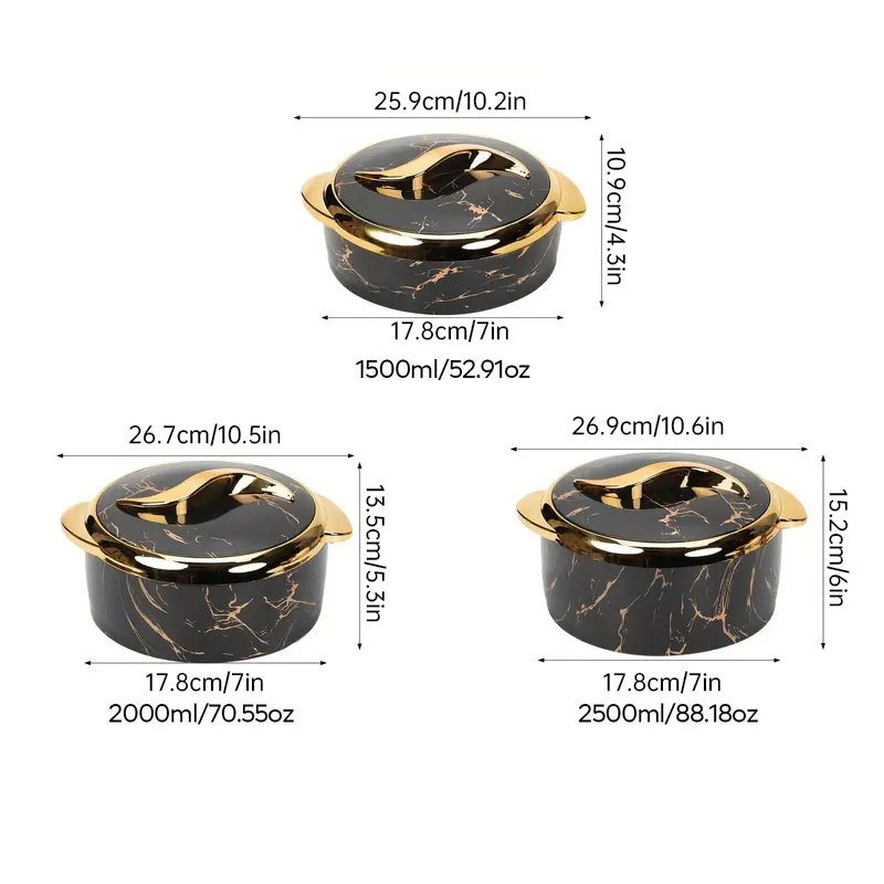 – The largest box has a diameter of 7 inches, a height of 6 inches, a capacity of 2500ml, and a total height (including the lid) of 10.6 inches.