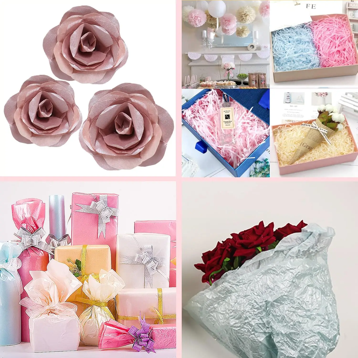Nice Artistic Decoration: Tissue paper bulk is suitable wrap for wine bottle, S/M gift, bags, box, baskets, flower. Perfect decor for birthday, anniversary, wedding, Christmas, holiday, DIY crafting paper poms and other party decorations