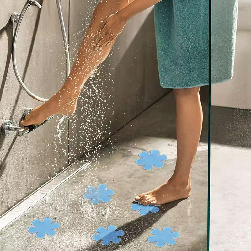Do you wonder how to prevent bathtubs or showers from slipping? To address this potentially dangerous situation, we provide **suction-free flower-shaped bathtub stickers**. This set of anti-slip bathtub stickers works like a bathtub mat but is easier to install, lighter, and simpler to maintain. Just stick the individual stickers on the inner surface of your bathtub or the tile floor of your shower—you can also arrange them into any shape you want.
