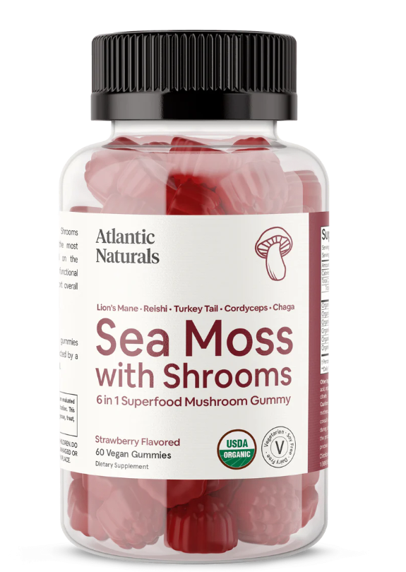 Crafted with meticulous care, our gummies combine the powerful benefits of Sea Moss with an exclusive blend of five functional mushrooms: Reishi, Lion’s Mane, Chaga, Cordyceps, and Turkey Tail. Each serving of two gummies delivers high concentrations of these ingredients, thanks to the use of premium extracts, ensuring you get the maximum benefits in every dose.