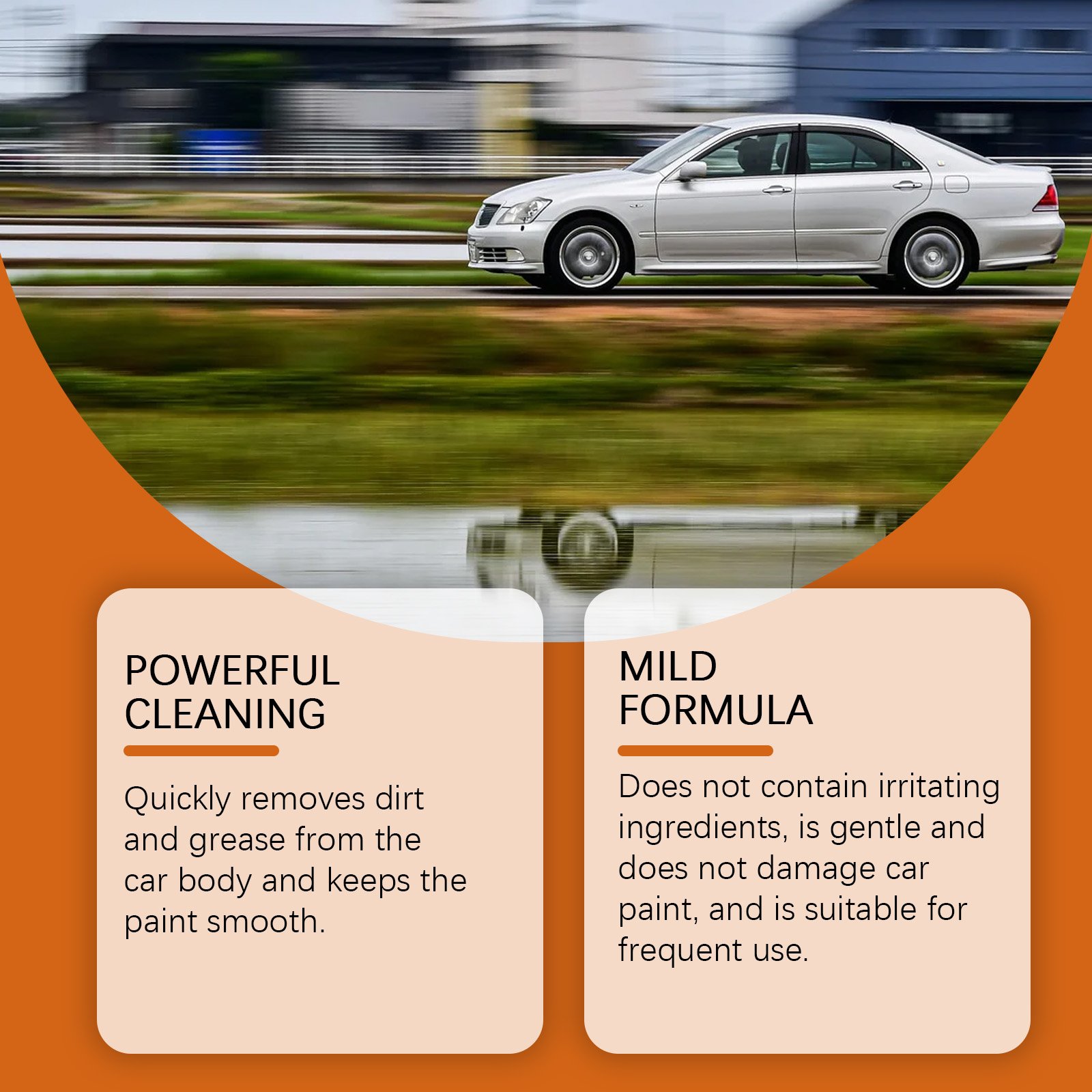 Our car wash liquid is carefully formulated with orange peel extract and sodium bicarbonate. Designed specifically for deep cleaning of vehicle body surfaces. The usage method is extremely convenient: Use a foam spray gun: Mix the car wash liquid with water, pour it into the foam spray gun bottle, and shake well. Connect the foam spray gun to the high-pressure car wash machine, evenly spray the foam on the car body surface and let it stay for 3 to 5 minutes. Thoroughly clean the vehicle with the high-pressure water gun and then dry it. Use a bucket Mix the car wash liquid with water, immerse a sponge or car wash gloves in the liquid, and scrub the vehicle from top to bottom. Then rinse the vehicle thoroughly with clean water, dry it and it can provide a comprehensive cleaning effect. It is also suitable for wheels and the chassis. Moreover, it has a powerful cleaning ability, capable of removing dirt, pollen, road salt, road film, bird droppings, insect marks, etc. from the car. It can be used in conjunction with traditional bucket cleaning methods or foam guns, and has added UV and ceramic protection, which helps keep your car clean for a longer time. It can be safely used for packaging, dyeing and paint protection films.