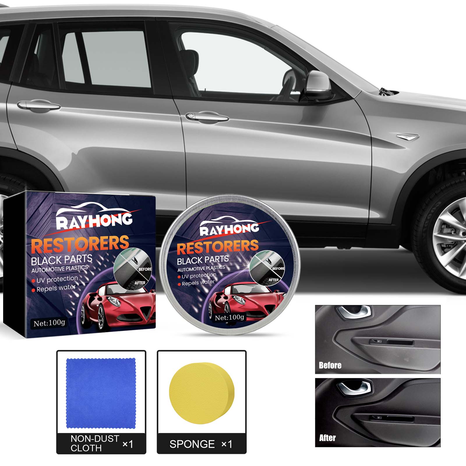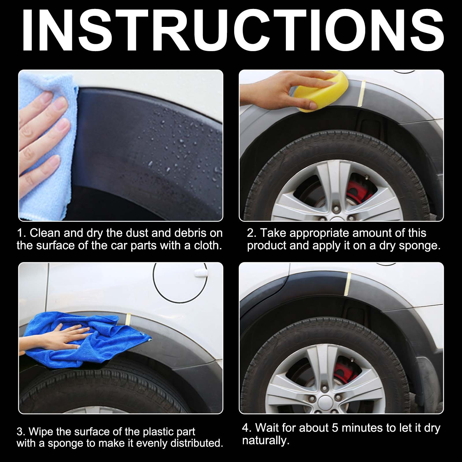 Our automotive plastic repair waxes contain carnauba wax, beeswax, stearic acid. It can have good hydrophobicity and dust resistance, which can reduce the internal corrosion of moisture and dust in the air and reduce fading. Its use is very simple: 1. Wipe the dust and debris on the surface of the car parts with a rag. 2. Apply appropriate amount of this product to a dry sponge; 3. Wipe the surface of the plastic parts with a sponge to make them evenly distributed; 4. Wait about 5 minutes for it to dry naturally. It can be used on rubber, plastic or painted surfaces to reduce cracking and bending caused by drying, and to reduce the effect of ultraviolet light for more vivid colors.