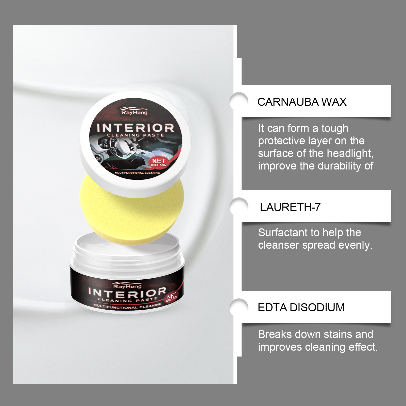 Our car interior cleaning cream contains carnauba wax and isopropyl alcohol. It is capable of deep cleaning and effective removal of dust, stains and other contaminants from internal surfaces. The use of gentle formulation, does not harm the internal material, will not cause material damage or fade. Its use method is very simple: take the appropriate amount of this product on the car interior table, wipe back and forth with a sponge, and finally wipe away the residue. And it can be simple to use, requiring no specialized skills or complicated steps.