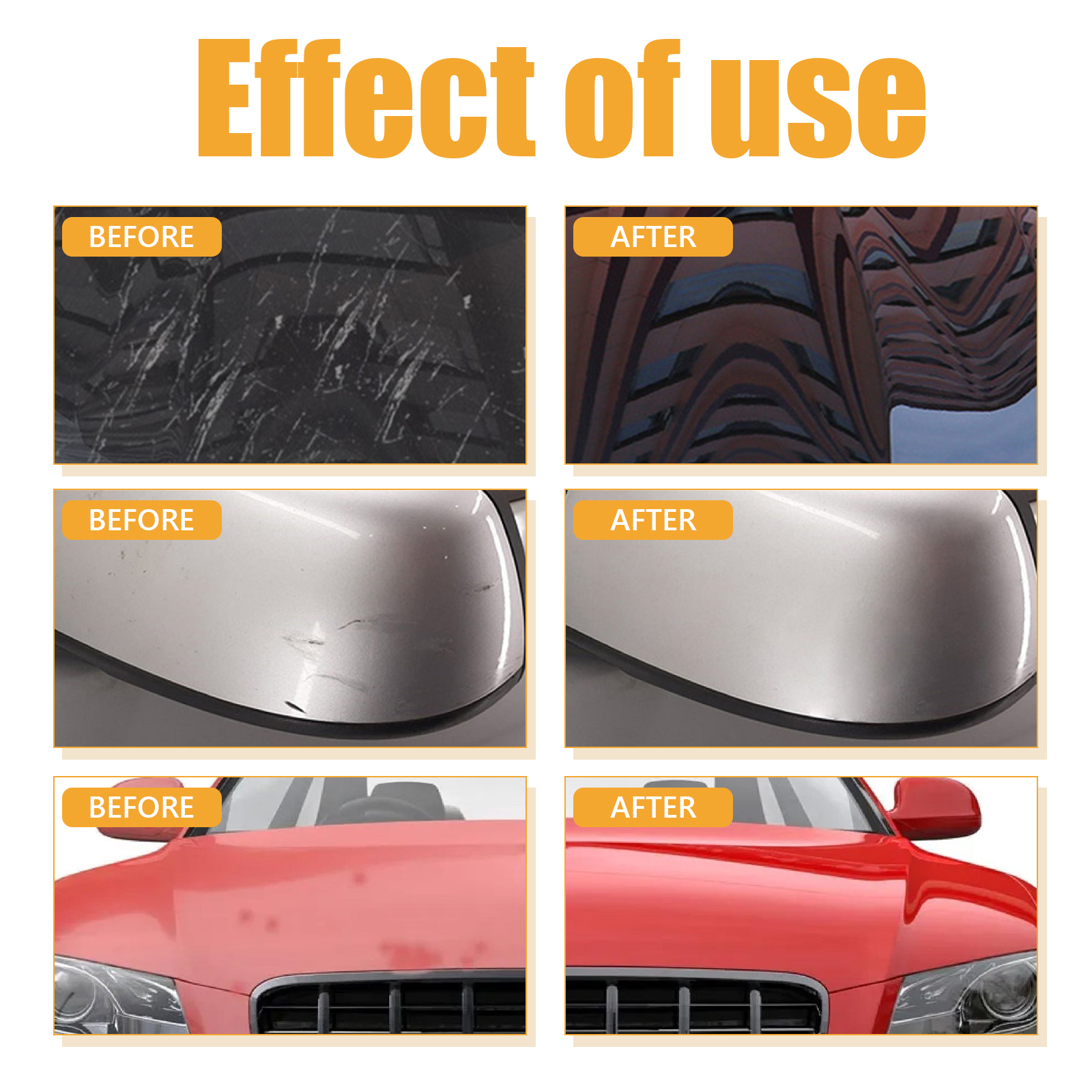 Our car scratch repair cream contains mineral oil and silica. It can clean the oxidation layer and stains on the surface of the car, reduce the impact of high temperature on the surface, and keep the metal surface clean. Its use method is very simple: 1. Clean and dry the dust and debris on the surface of the car. 2. Apply appropriate amount of scratching wax to a dry sponge; 3. Sponge the scratch back and forth until the scratch subsides or disappears. In addition to repairing scratches, it can also repair damage to the car paint, increase the luster of the metal surface, and restore the light.