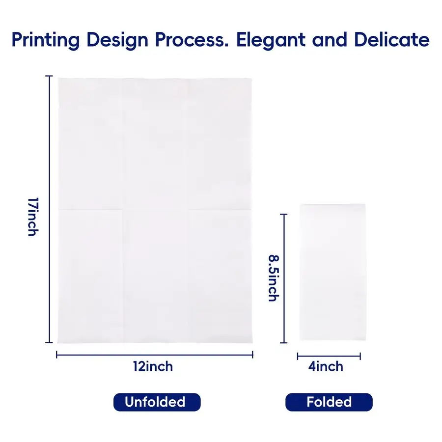 Size The whole disposable guest towel piece is 12 X 17 when unfolded, and 8.5 X 4 when folded Has a 1 6fold design for compact storage and extra absorbency when folded.Each package includes 480 count napkins towels able to meet the needs of a long time life