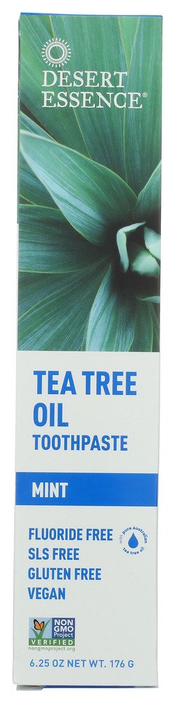 Plant-based extracts give this fluoride-free tea tree oil toothpaste its inherent cleansing power. Baking Soda and Sea Salt gently helps to scrub away plaque, while Australian Eco-Harvest® Tea Tree Oil helps fight cavity-forming sugar acids. Leaves teeth sparkling clean and breath freshly scented with Pure Mint Oil.