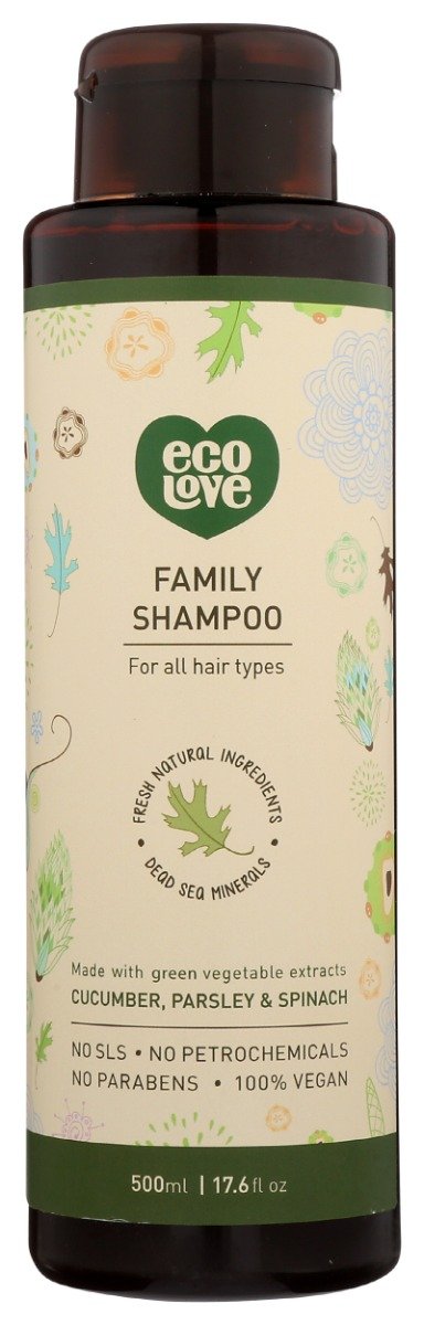 EcoLove Green Family Collection Shampoo is free from SLS, parabens, and petrochemicals. 95% nature-derived ingredients (30% organic). Enriched with essential oils, organic herbs & plant extracts, and 26 Dead Sea minerals.