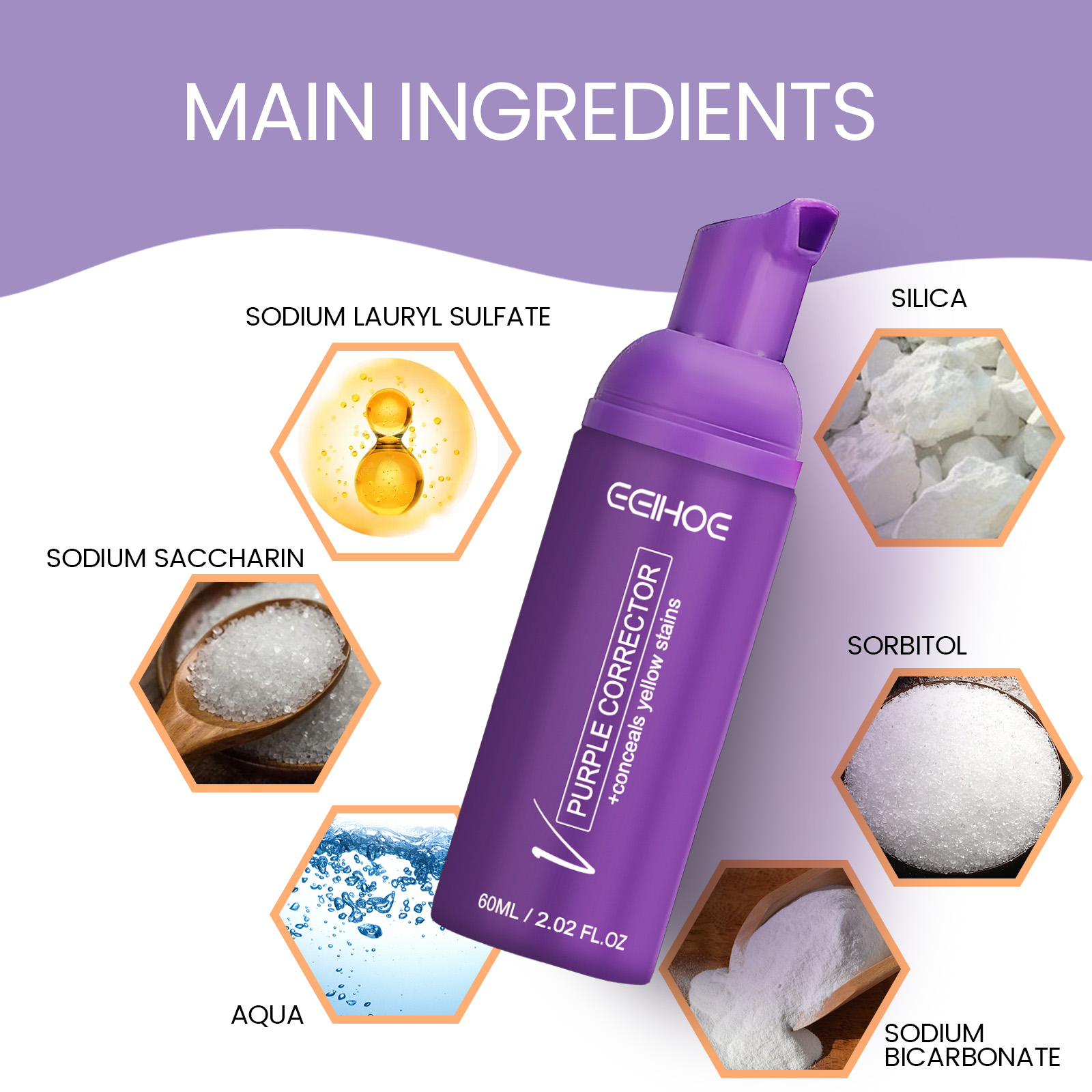 Our purple tooth cleaning mousse contains sodium lauryl sulfate and sorbitol. It can relieve gum discomfort, inhibit the growth of harmful bacteria, and effectively remove plaque and tooth stains on the surface of the teeth. The way to use it is very simple: the method of gargling is to squeeze out the right amount of foam into the mouth, let the foam flow into your mouth and gums, 10-15 seconds after spit out; The method of brushing is to squeeze the foam on the toothbrush, gently brush the teeth and tongue, and clean for 2 to 3 minutes. After use, it helps to improve the oral environment, care for oral health, and remove oral bacteria. Help with bad breath.