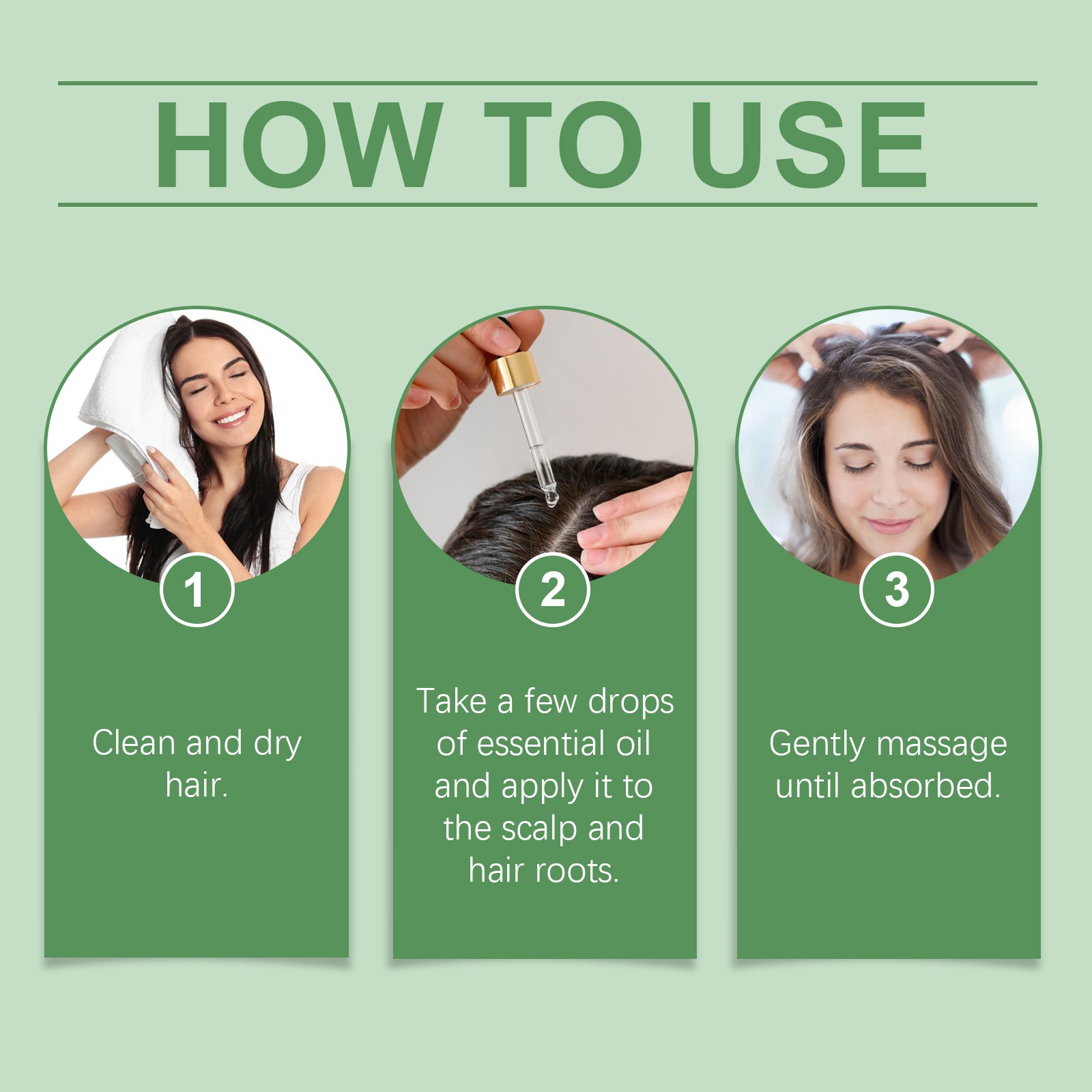Our rosemary hair oil contains mineral oil and rosemary leaf oil. It strengthens nutrition and repairs damaged hair from the inside out. Restores luster to hair, presenting silky touch. Repair damaged hair and restore strength. How to use it is simple: 1. Clean and dry your hair. 2. Take a few drops of essential oil and apply to the scalp and roots of your hair. 3. Gently massage until absorbed. Regulates scalp oils and relieves dryness and itching. Light texture, easy to absorb, no residue.