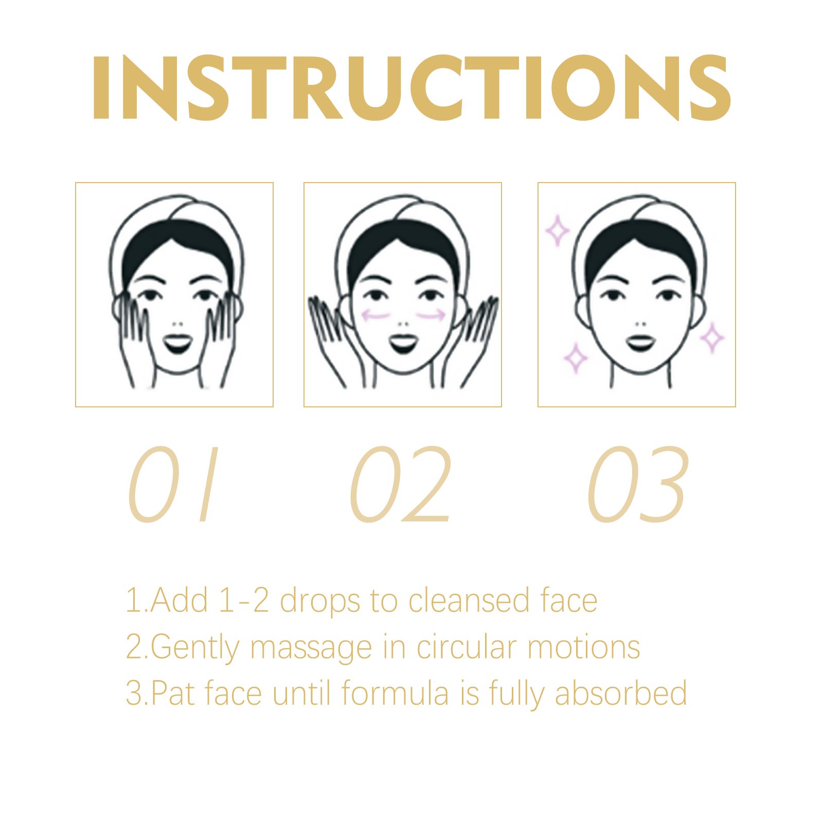 Our Golden Age Serum contains glycerin, panthenol, and PCA sodium. It can eliminate deep wrinkles and dark spots, anti-aging, firming skin, anti-wrinkles, skin rejuvenation. Its use is very simple: after cleansing, take 1-2 drops on the face, gently massage in a circular motion, and pat the face until it is completely absorbed. Lift and tighten loose skin, restore skin elasticity and a youthful, smooth texture.