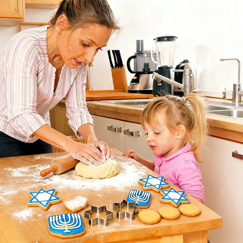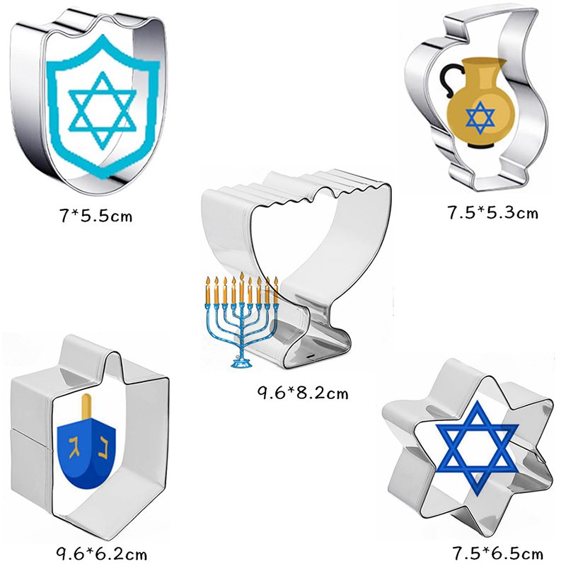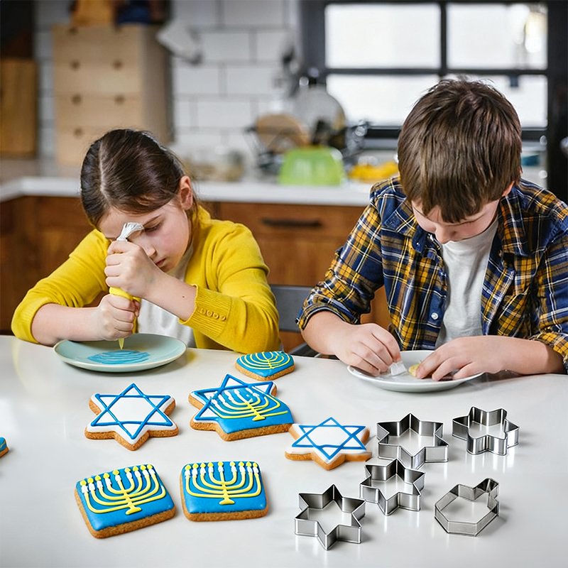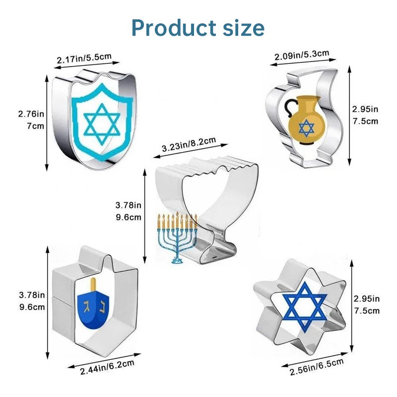 Durable & Sturdy: Made of safe, reliable stainless steel. Odorless, nearly unbreakable, and built for long-lasting use. Easy to Clean: High-quality stainless steel is non-stick and simple to clean. Festive Designs: Set includes Menorah, Dreidel, and Star of David cutters for fun, themed Hanukkah cookies. Versatile Use: Ideal for cookies, clay, fruits, vegetables, cheese, or sandwiches. Can also be used as decorative ornaments. Great Gift Idea: Comes in a gift box, perfect for family baking activities or as a holiday present.