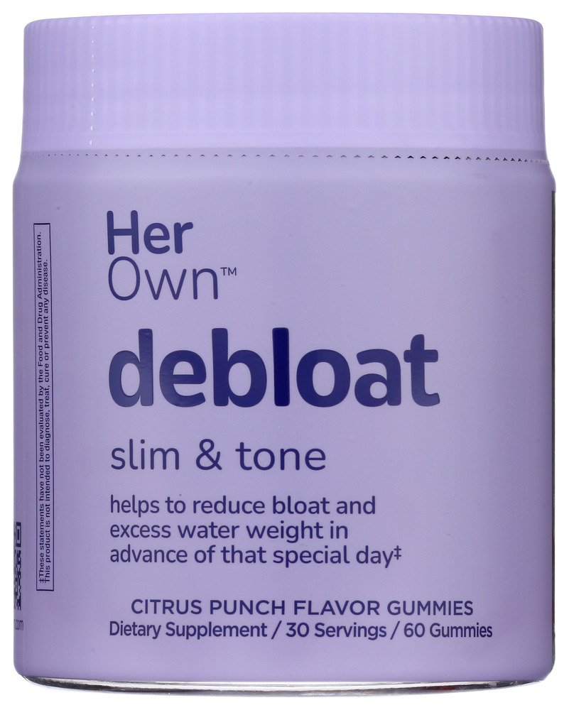 Slim and tone. If you’re looking to reduce bloat or excess water weight after a big meal or in advance of that special day, Her Own Debloat Gummies are just what the doctor ordered! Our proprietary Water Balance Blend of apple cider vinegar, green tea extract, guarana extract and dandelion extract can help you shed excess water weight and give you a pre-event energy boost.