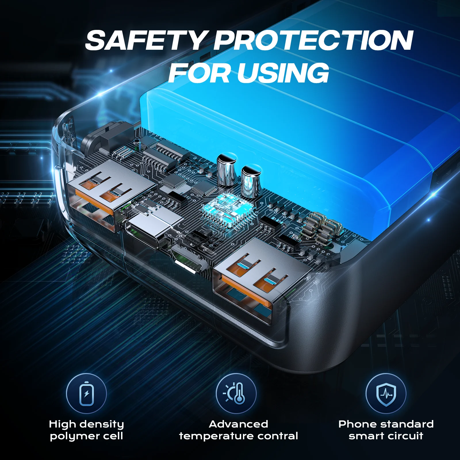 Built with high-quality Li-Polymer cells and an intelligent protection system that guards against overcharge, over-discharge, overheating,and short circuits.