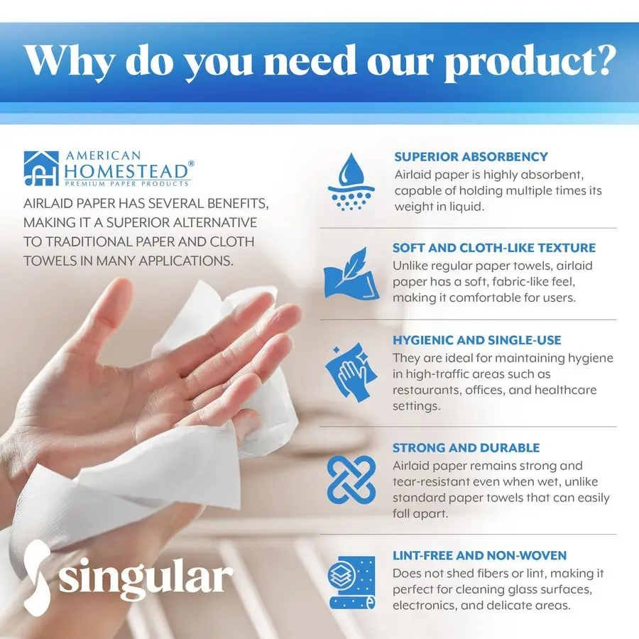 LUXURIOUS LINENLIKE TEXTURE Soft, absorbent, and durable, offering the feel of fabric with the convenience of disposable paper.