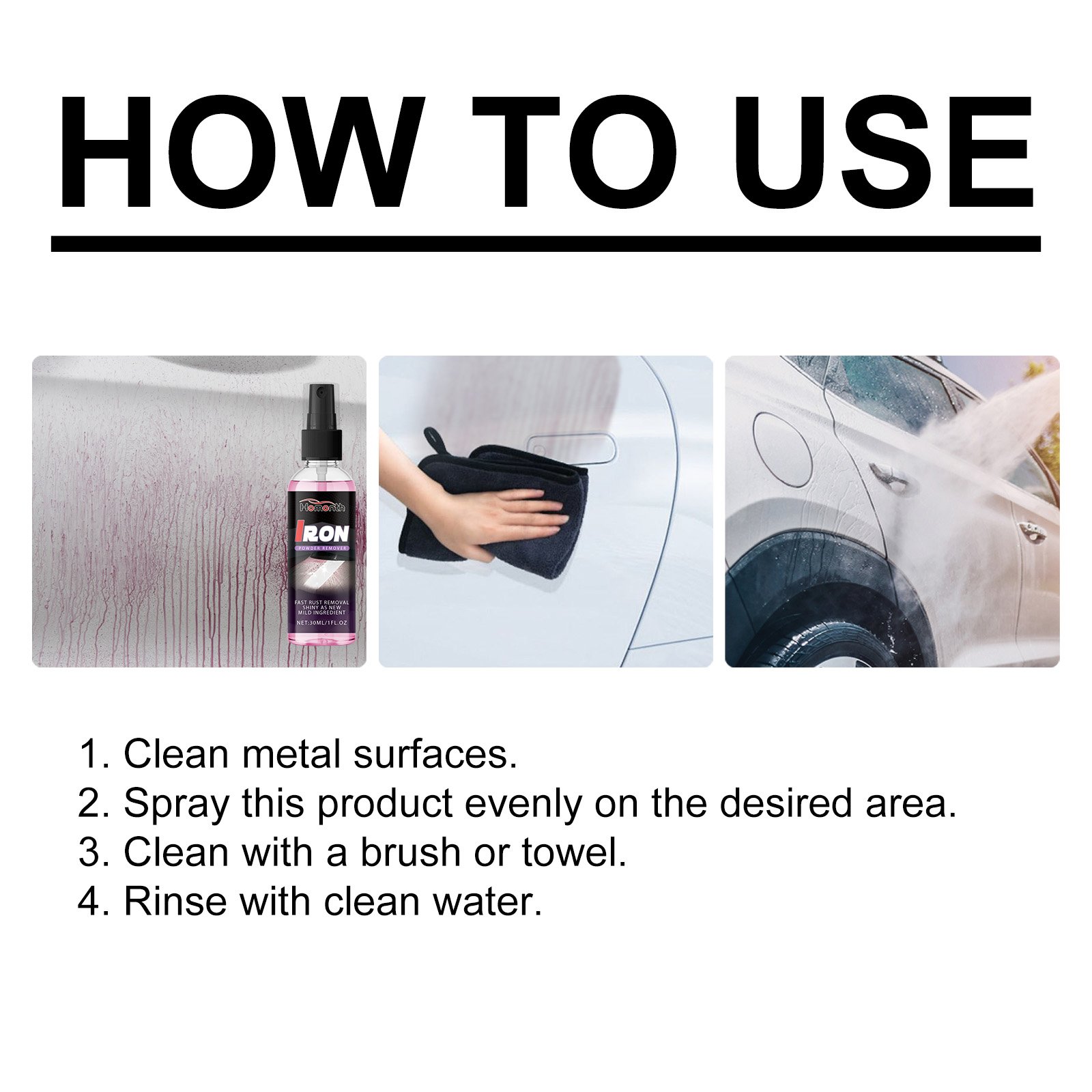 Our car rust spray contains citric acid, sodium carbonate, and disodium EDTA. It can quickly and effectively remove rust from various metal surfaces, helping to remove dirt and rust, keeping the surface of your wheels shiny and durable. Its use method is very simple: 1. Clean the metal surface; 2. Spray the product evenly on the required parts; 3. Clean with a brush or towel. 4. Rinse with water. Auto rust removal spray helps restore the appearance of metal, extend its service life, and save expensive replacement costs for a cool new look. Ideal for industry, homes and cars.