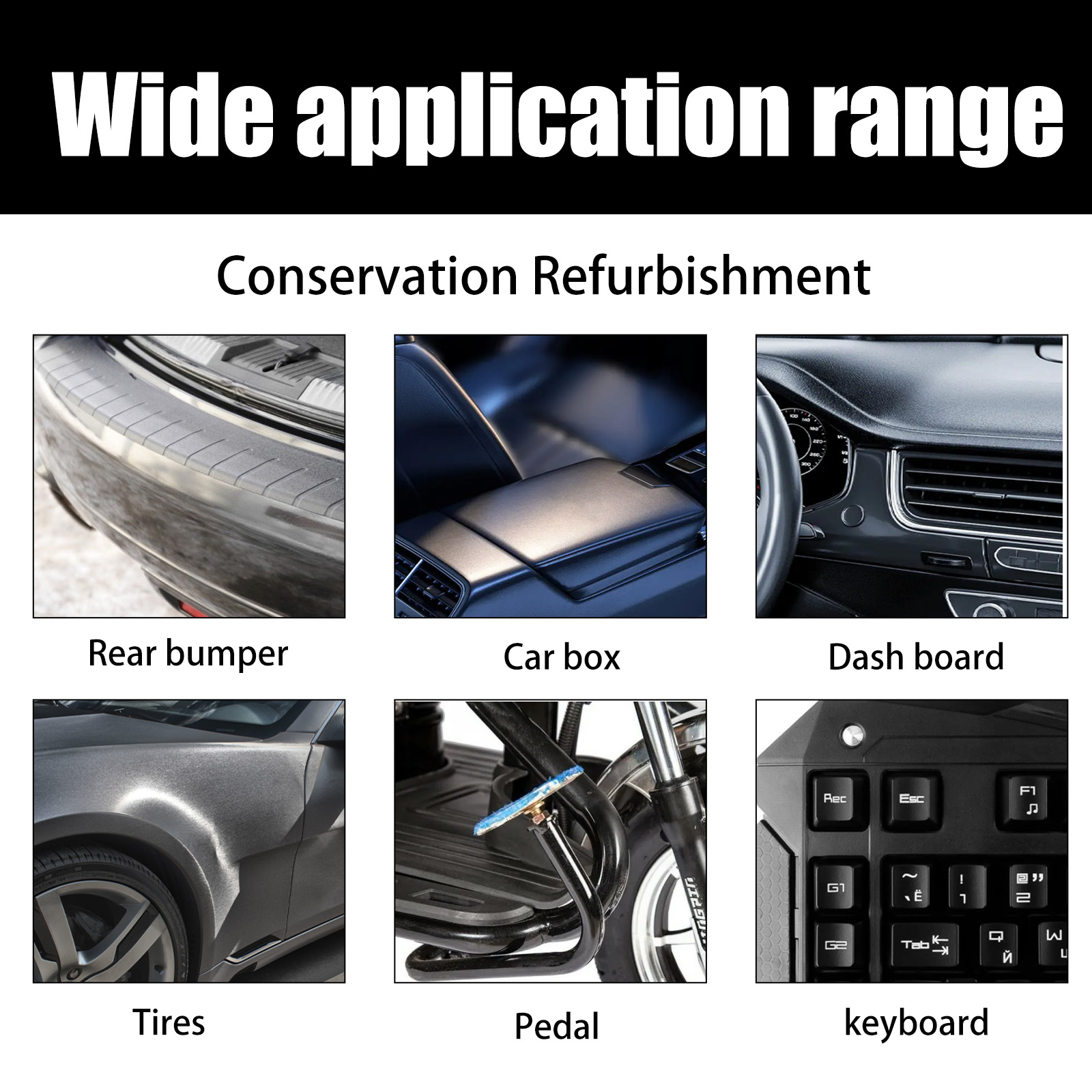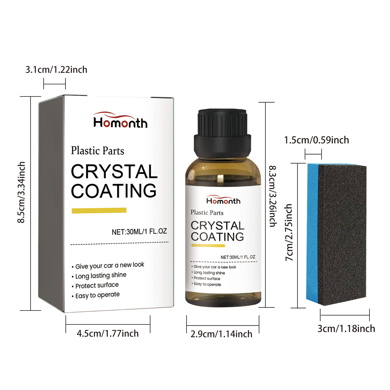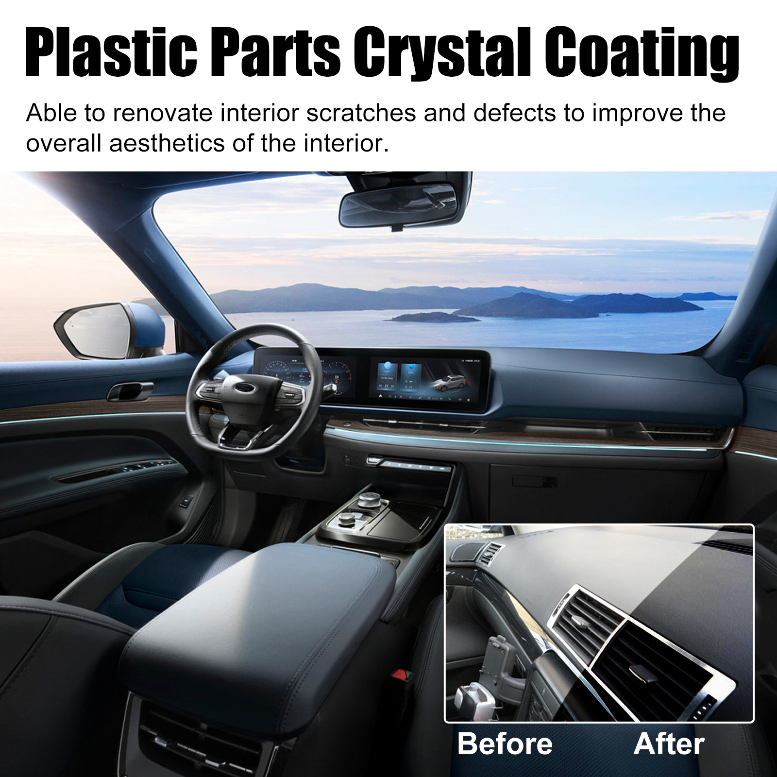 Our Plastic Parts Crystal Coating contains disodium EDTA, sodium bicarbonate, lauryl ether 7. It can effectively remove surface oil, dust, fingerprints and stains, form an invisible coating on the surface, protect the surface, prevent fading, cracking and wear, and make the dull car interior sparkling. Its use method is very simple: clean the surface and keep dry, pour the appropriate amount of this product on the sponge, wipe back and forth on the surface, wait for dry. Internal scratches and defects can be refurbished to improve the overall aesthetics of the interior.