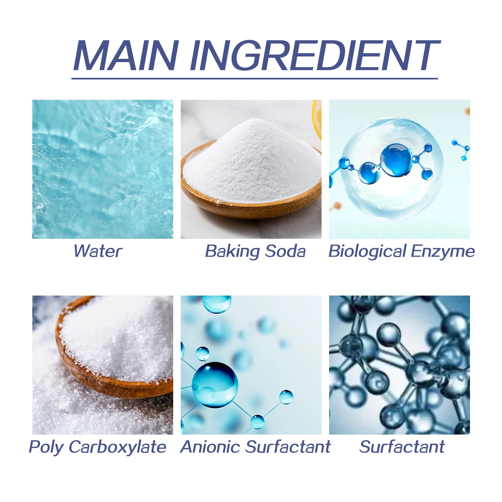 Our Activatod Enzyme Laundry Stain Remover contains baking soda, biological enzyme, poly carboxylate. It can high-efficiency decontamination, cleans daily stains. Its use is simple: Take an appropriate amount of detergent and apply it to the stain. Wait for 30 seconds to 2 minutes for the stains to dissolve. Gently absorb the stains with a clean cloth or sponge. Targeted decontamination and strong cleaning power.