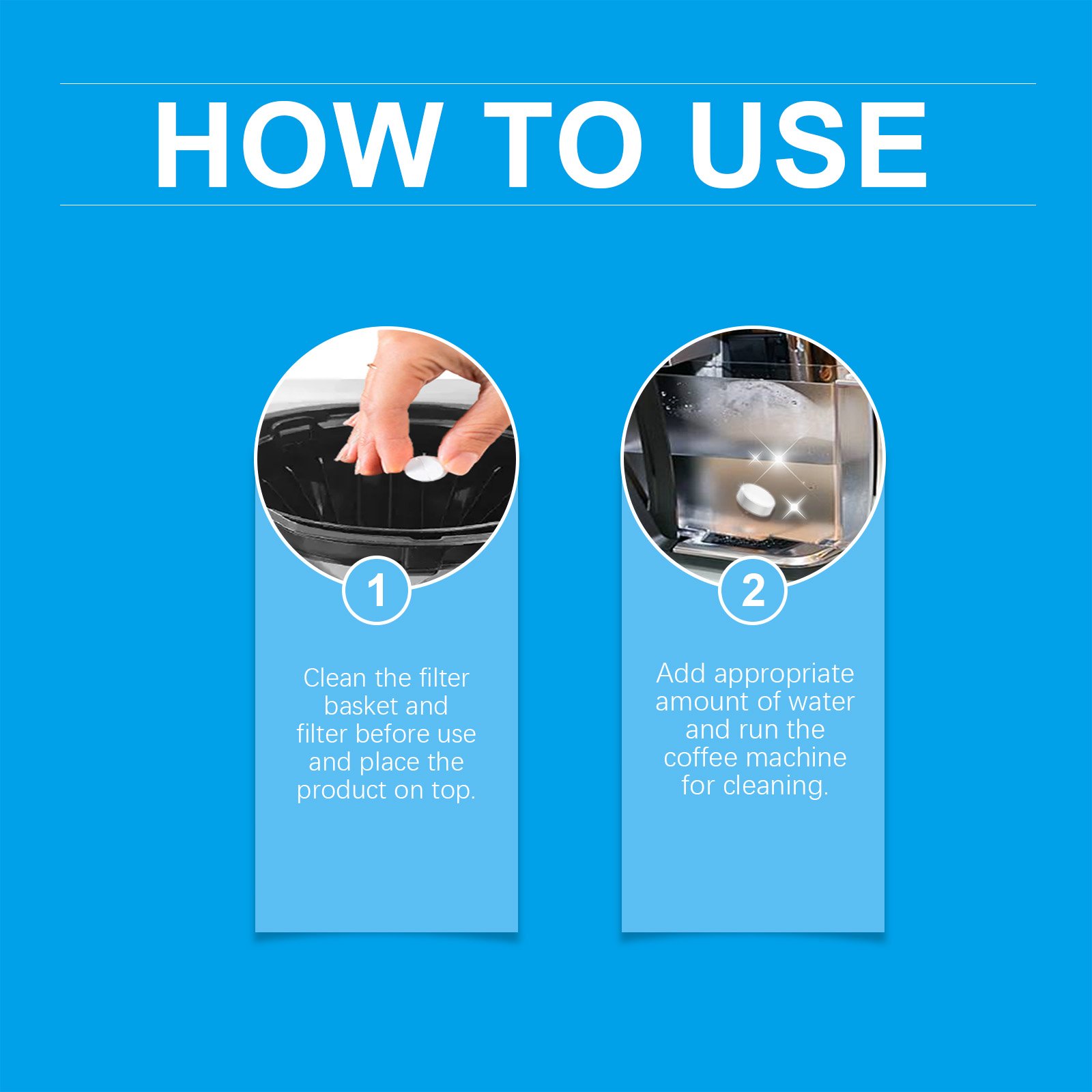 Our coffee machine cleaning tablets contain lauryl polyether-7 and sodium lauryl polyether sulfate. It can deeply clean the inside of the coffee machine, effectively remove grease and coffee stains. Its use is simple: clean the filter basket and filter before use and place the product on it. Add some water, then turn on the coffee machine to clean. And it can remove the odor inside the coffee machine, so that the coffee machine will not affect the taste and aroma of the coffee when brewing coffee.