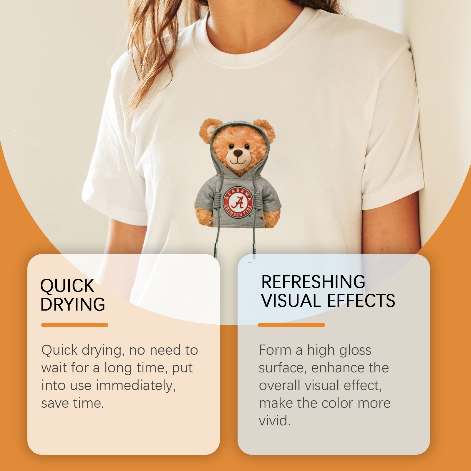 Our cotton shirt thermal sublimation coating spray contains lauryl polyether-7, polyurethane resin. It can form a high-gloss surface, enhance the overall visual effect, and make the colors more vivid. The way to use it is simple: print your pattern on sublimed paper. Spray the sublimation coating spray evenly until the fabric is completely soaked, but do not drip. And drying fast, no need to wait for a long time, immediately put into use, saving time.