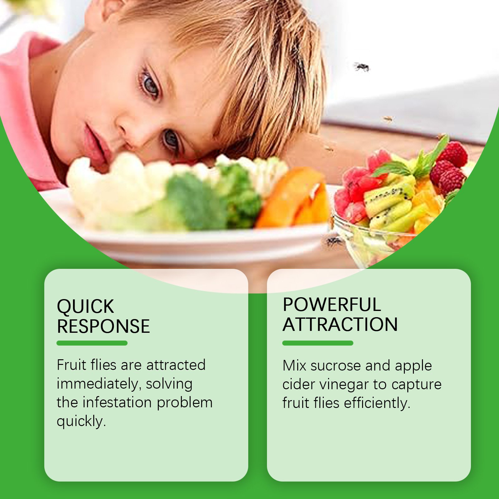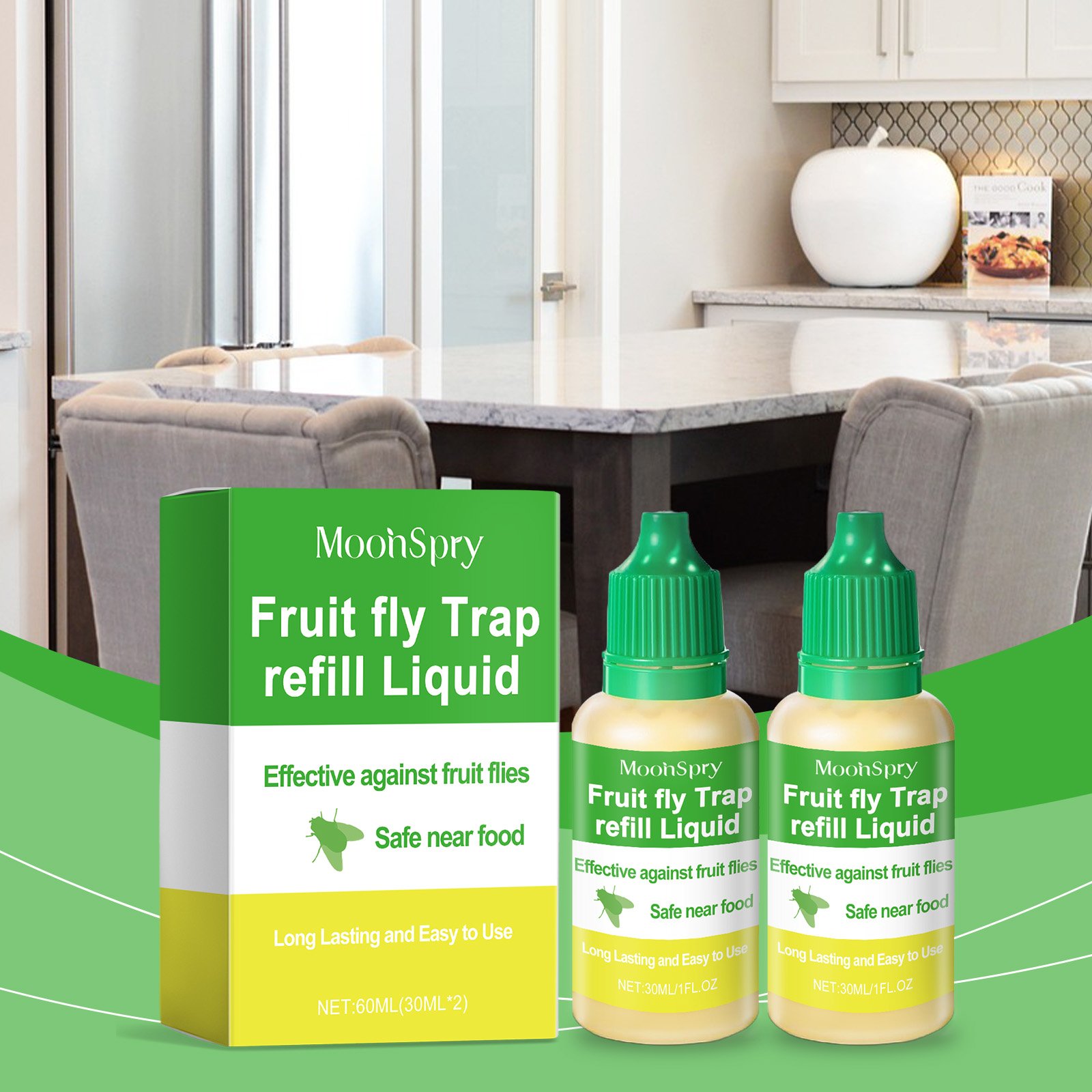 Our fruit fly trapping supplement contains sucrose, apple cider vinegar, glutamate. It makes fruit flies instantly attracted, quickly solving the pest problem. A mixture of cane sugar and apple cider vinegar is effective in catching fruit flies. Its use is simple: Pour this product into a fly trap and place it in an area where fruit flies and other insects are likely to appear. Use a mild formula to reduce irritation. Maintain high capture rates over time and reduce reuse.