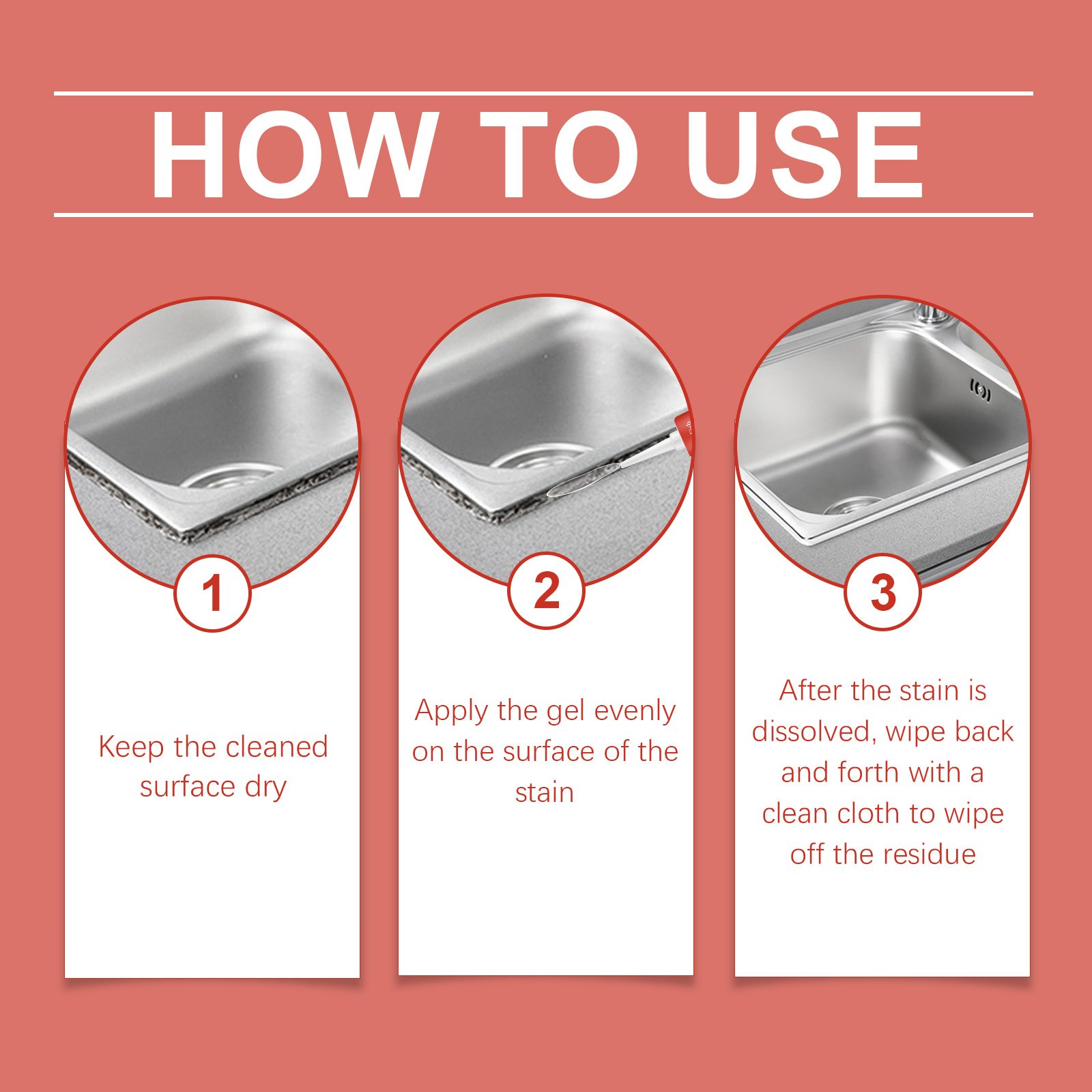 Our multi-purpose stain cleaning gel contains lauryl polyether-7 and sodium lauryl polyether sulfate. It can reduce the static electricity on the surface of the object to reduce the adsorption of dust, and maintain the cleaning effect for a long time. Its use is very simple: keep the clean surface dry, evenly apply the gel on the surface of the stain, after the stain is dissolved, wipe it back and forth with a clean cloth to remove the residue, and can protect the surface luster and keep the freshness of household items for a long time.