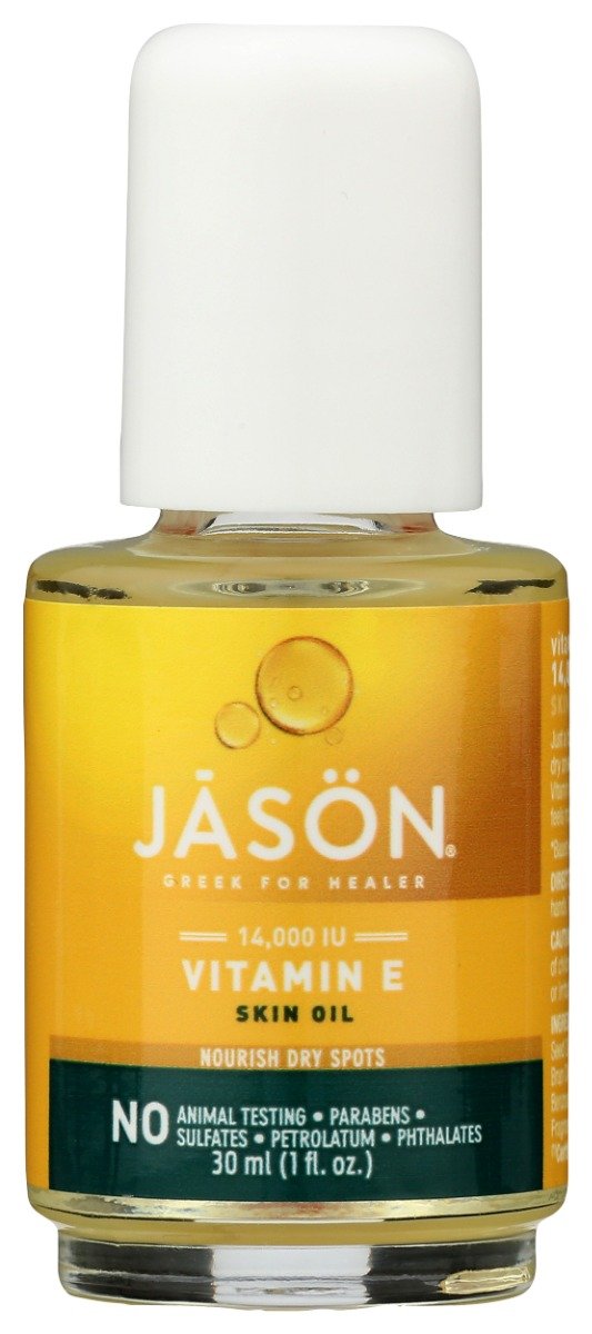 JĀSÖN Vitamin E Oil 14,000 IU conditions especially dry areas including damaged cuticles, and rough patches on heels, knees and elbows. Just a drop will give you instant relief. Rich Vitamin E and Avocado Oils nourish and protect for skin that feels instantly softer and smoother.