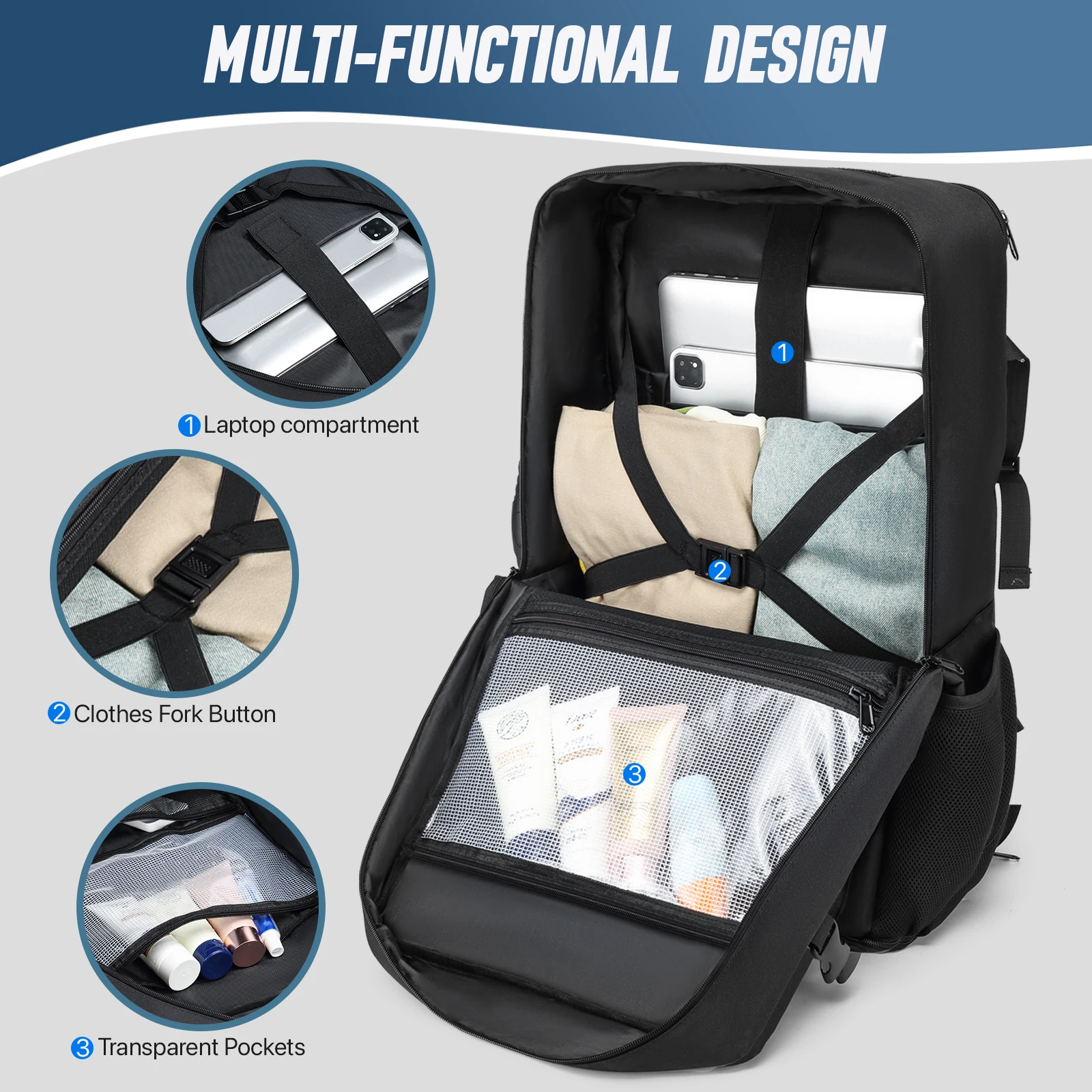 2.Multifunctional :This backpack is designed to be versatile, with multiple compartments and pockets to organize your belongings.