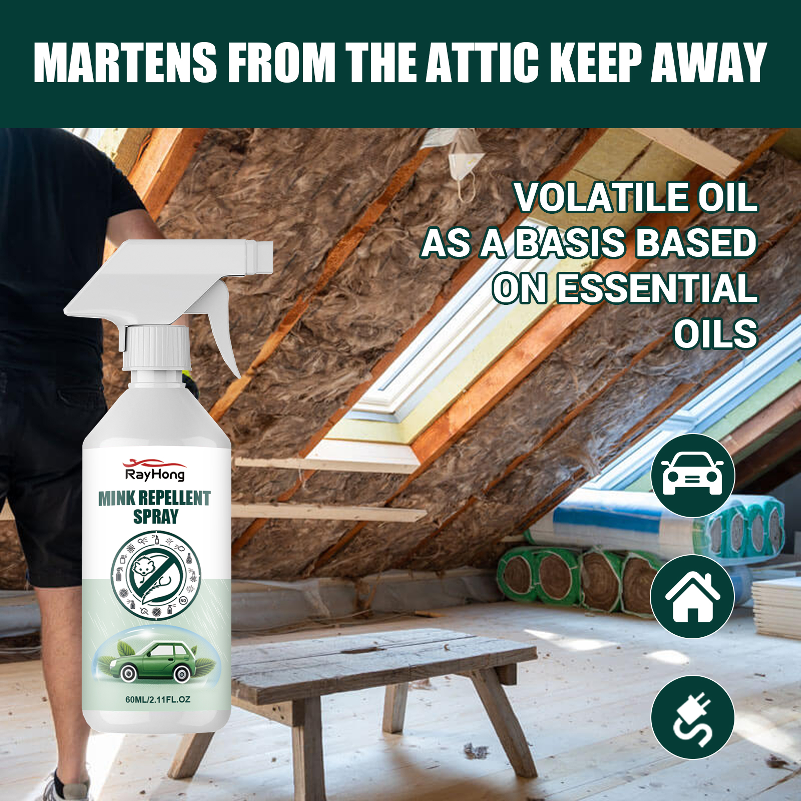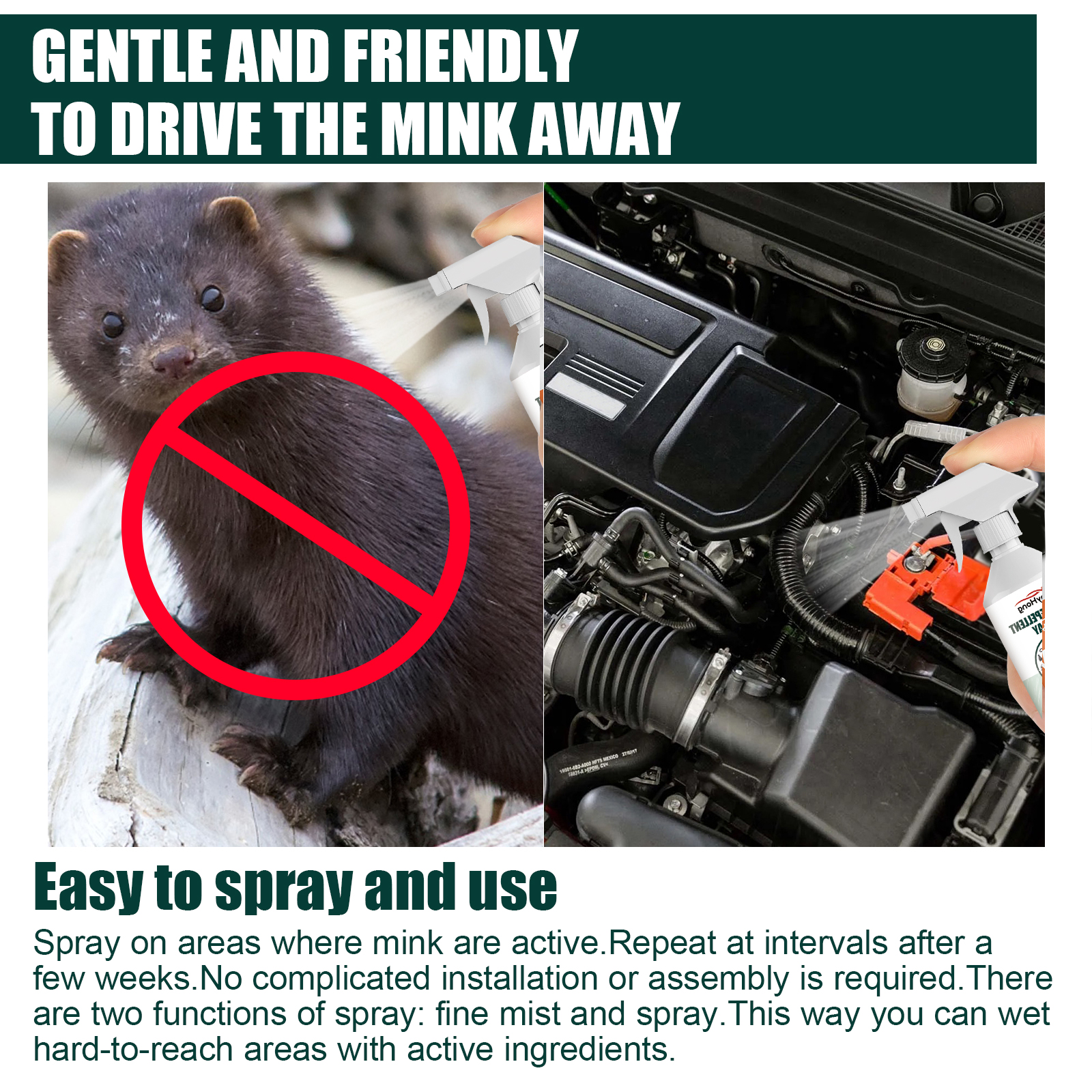 Our Mink Repellent Spray contain lavender oil, rosemary oil and peppermint oil. It can repel minks through unpleasant odors, but does not harm the animals, effectively protects the car from ticks and other rodents, and avoids maintenance costs such as cable bites. It’s easy to use: just spray the product on the area you want to protect, such as a car or seat. It can effectively repel rodents and prevent car damage.