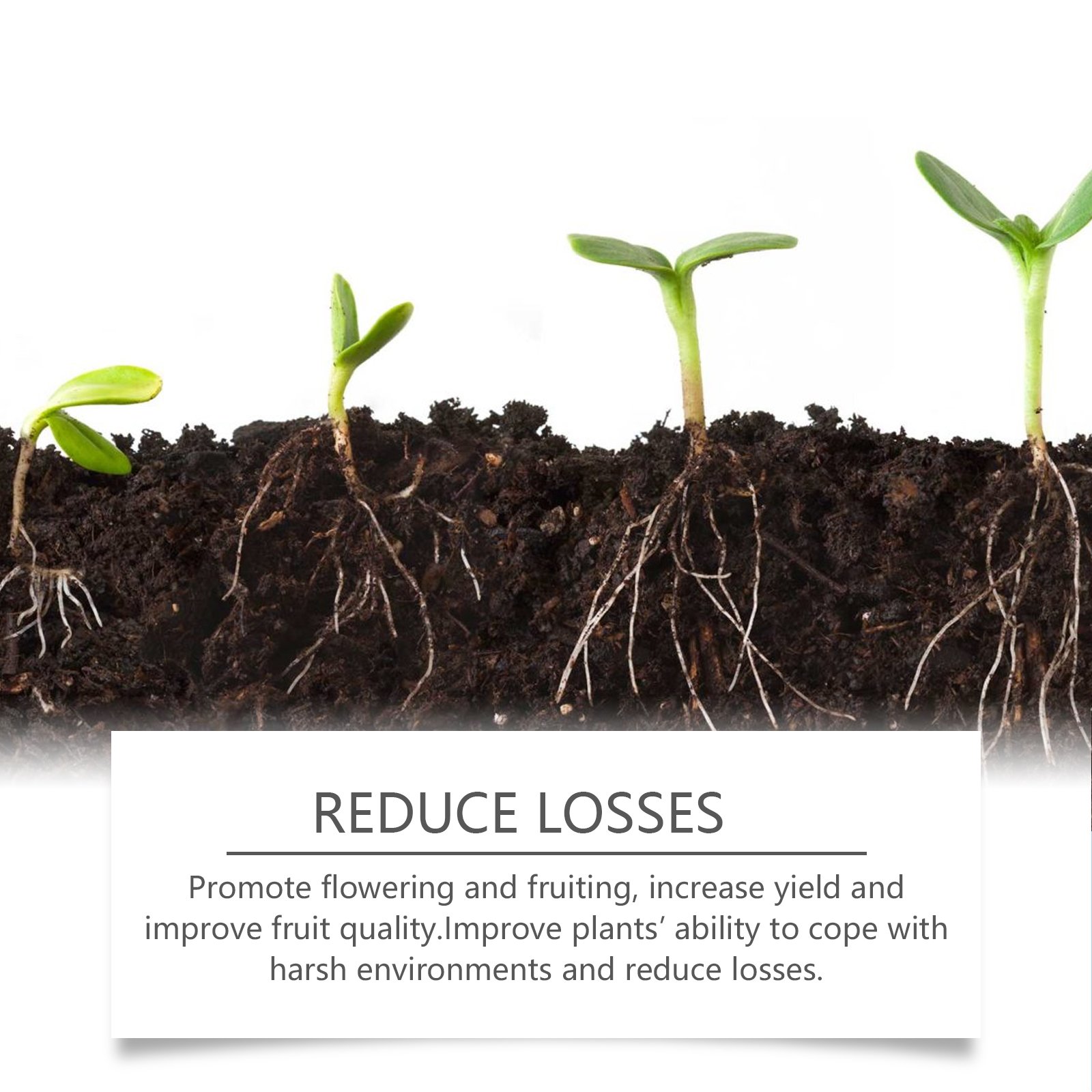 Our plant root powder contains magnesium sulfate, amino acid catalyst, nitro catalyst. It can enhance plant immunity and reduce pests and diseases. Promotes root expansion and increases water and nutrient uptake. Its use is simple: Pour the appropriate amount of this product directly into the plant growing soil. Promote flowering and fruit, increase yield and improve fruit quality. Improve the ability of plants to adapt to harsh environments and reduce losses.