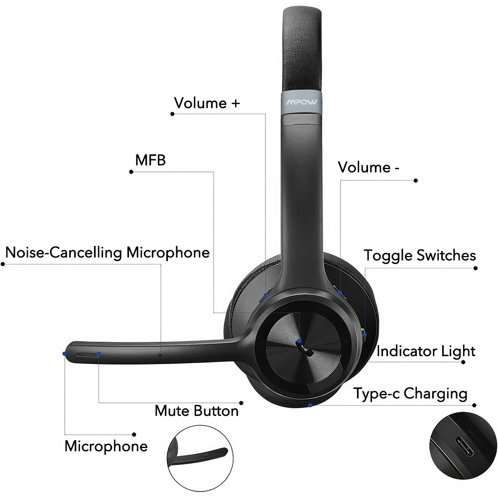 Bluetooth 5.3 | CVC8.0 Mic | Stereo Sound | Mute Function | Siri Active | Comfortable Earpads