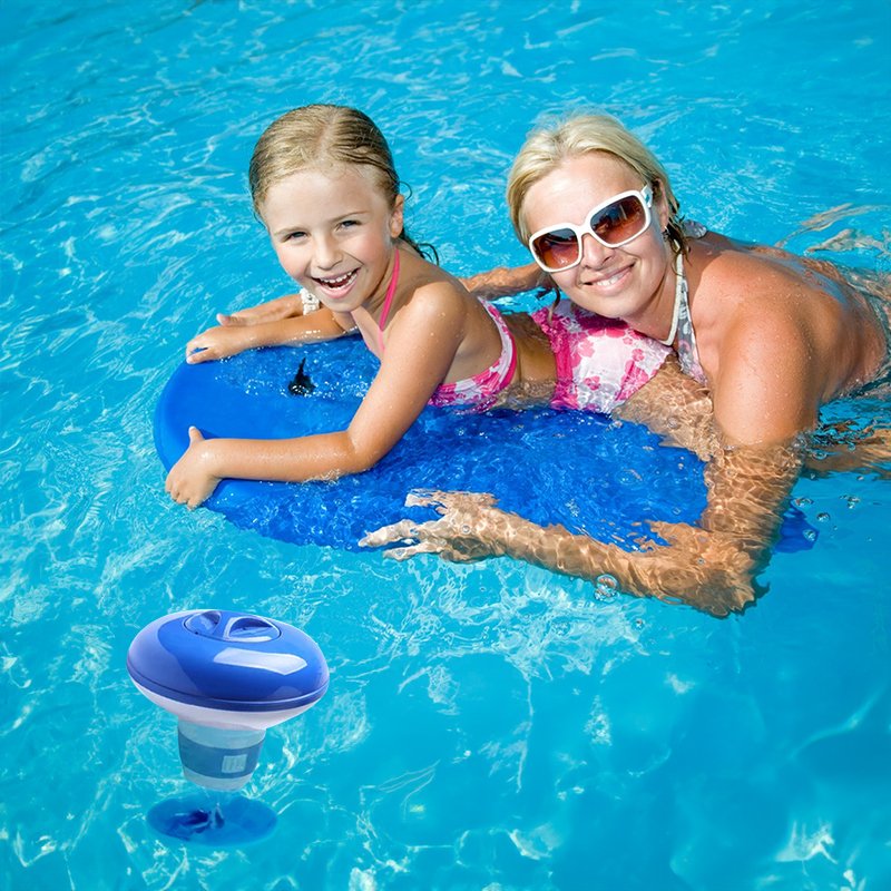 Floating chlorine dispenser for swimming pools, automatic disinfection application pump, tablet disinfectant box, spa pool accessories.