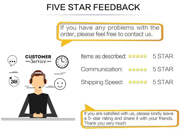 Your feedback is extremely important to our business development,we sincerely invite you to leave positive feedback with five stars to us basing on your satisfaction with our commodity and service.Unfortunately,if you are planning to give us a neutral/ negative feedback because of your bad buying experience with us,please contact us at any time so as to clear up your discontent and resolve the problem.
