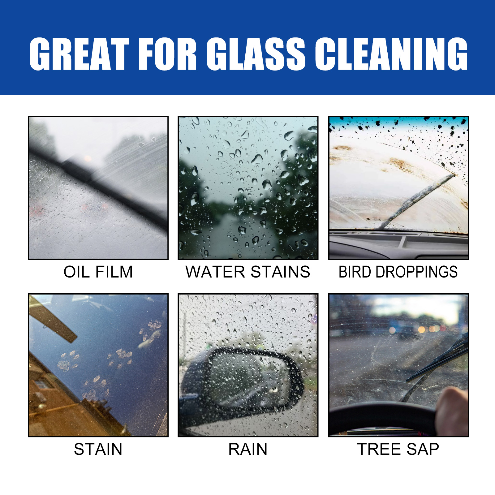 Our 2-in-1 car oil film cleaner contains baking soda, lemon extract, surfactants. It can efficiently clean the windshield of the car, reduce the damage of foreign bodies to the body surface, and maintain the window. Its use method is very simple: first clean the dust and debris on the glass, then apply an appropriate amount of this product on the surface, and then pour on a cloth to wipe back and forth on the glass, and finally rinse it off with water. Remove the most stubborn grease and dirt immediately after use, remove water stains and oil film on the glass, quickly improve transparency, and make the glass clean and shiny.
