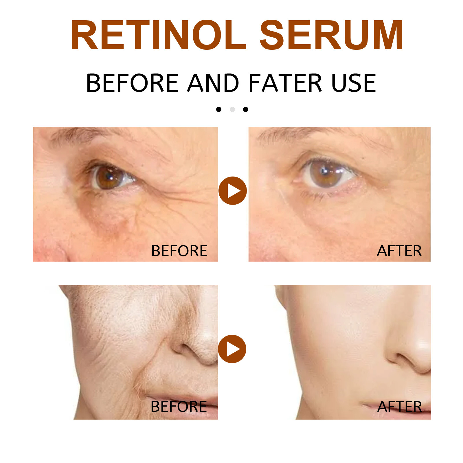 Our retinol face serum contains acetyl hexapeptide, retinol, squalane. It can speed up collagen regeneration, fade dry and fine lines, firm and tender skin deep, improve dullness and roughness, and increase skin elasticity. Its application method is very simple: first, after cleansing, then evenly apply the essence to the face, then use the palm and finger abdomen from top to bottom, from the inside to the outside along the contour of the face to lift the skin, pat the face to help absorb. And it can reduce facial wrinkles