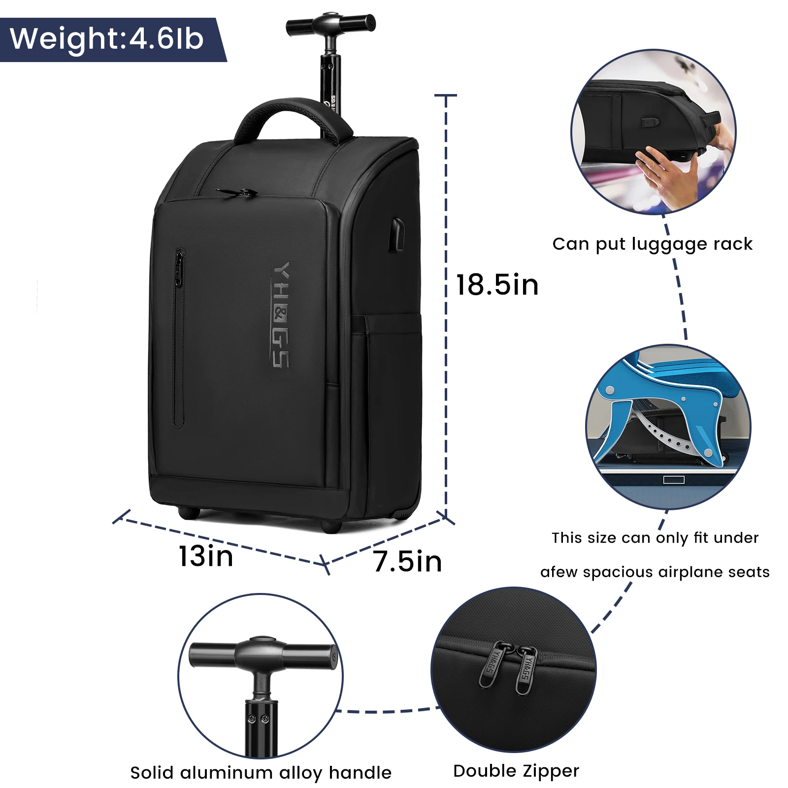 RUCYEN Rolling Backpack 15.6in Laptop Water Resistant Large Capacity Travel Luggage Wheeled Backpack with USB Shoulders Luggage for Men Women