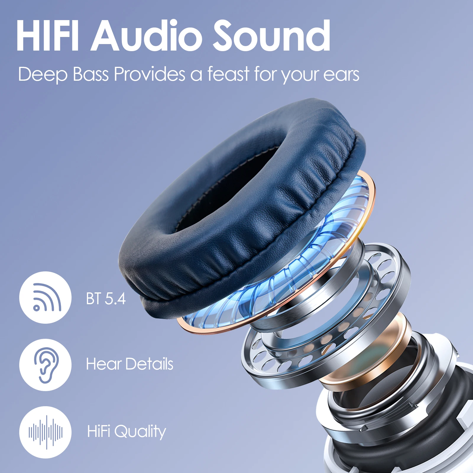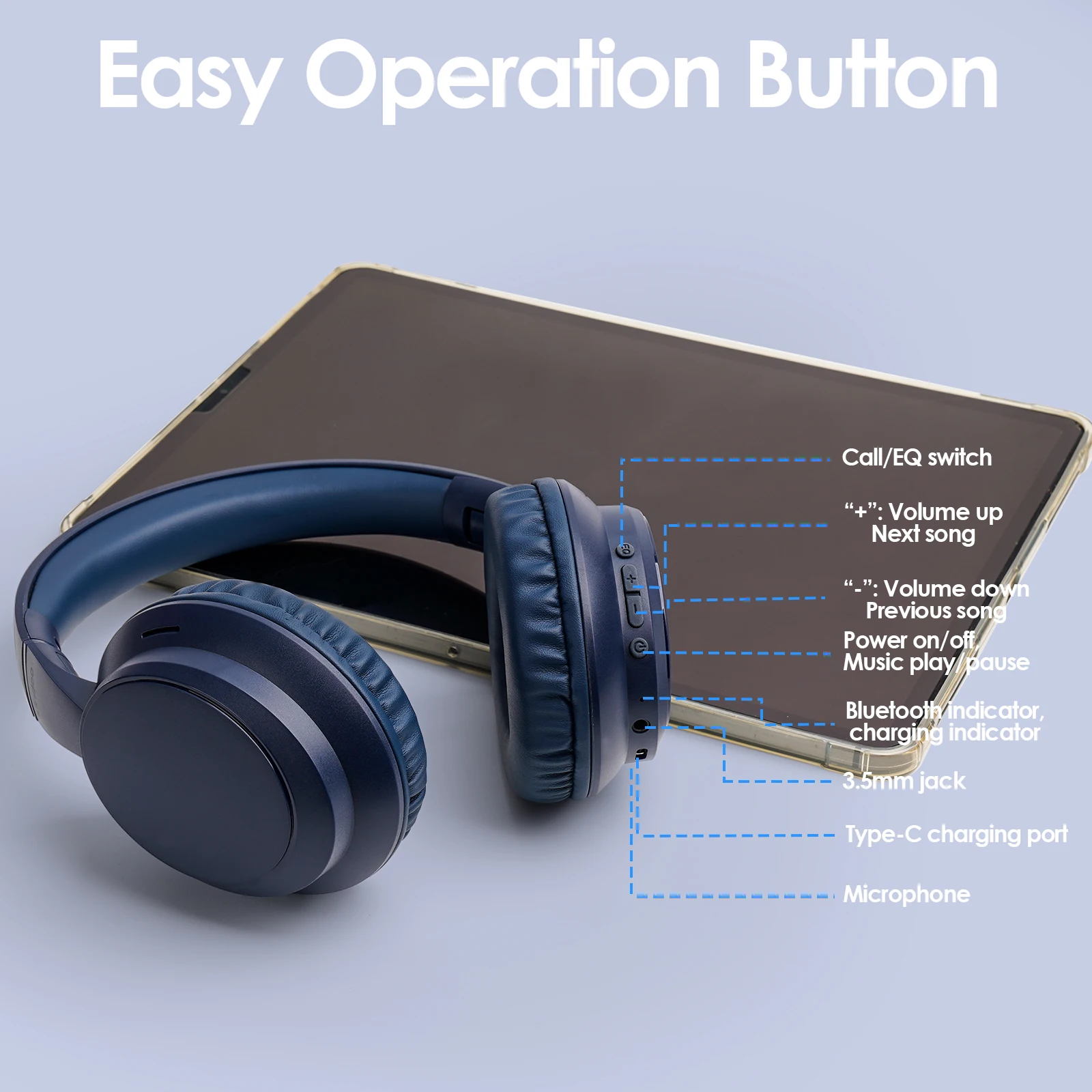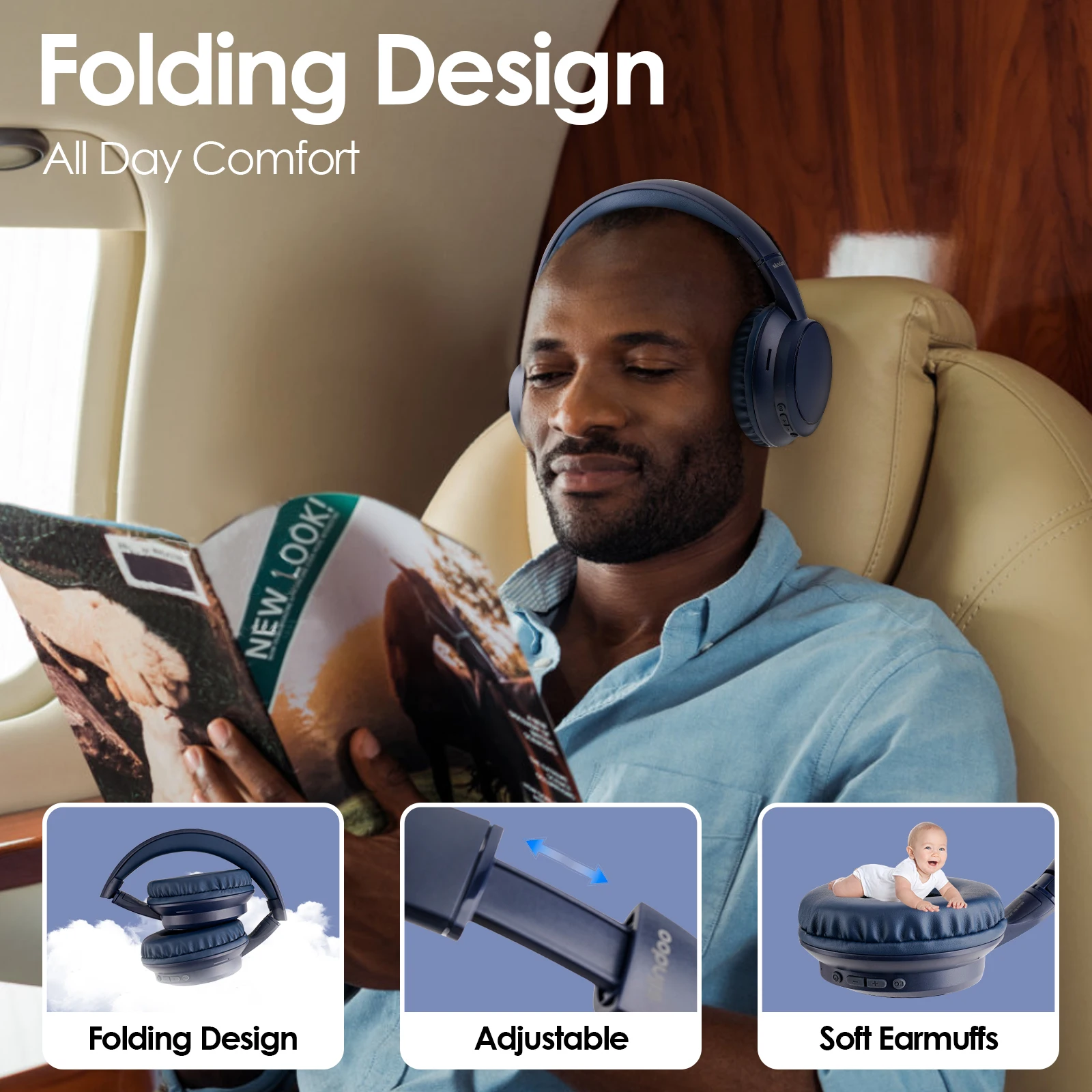 Siindoo JH-820 Wireless Bluetooth Headphones, 60H Playtime,3 EQ Sound Modes,Newest Foldable Lightweight headset for Travel Study