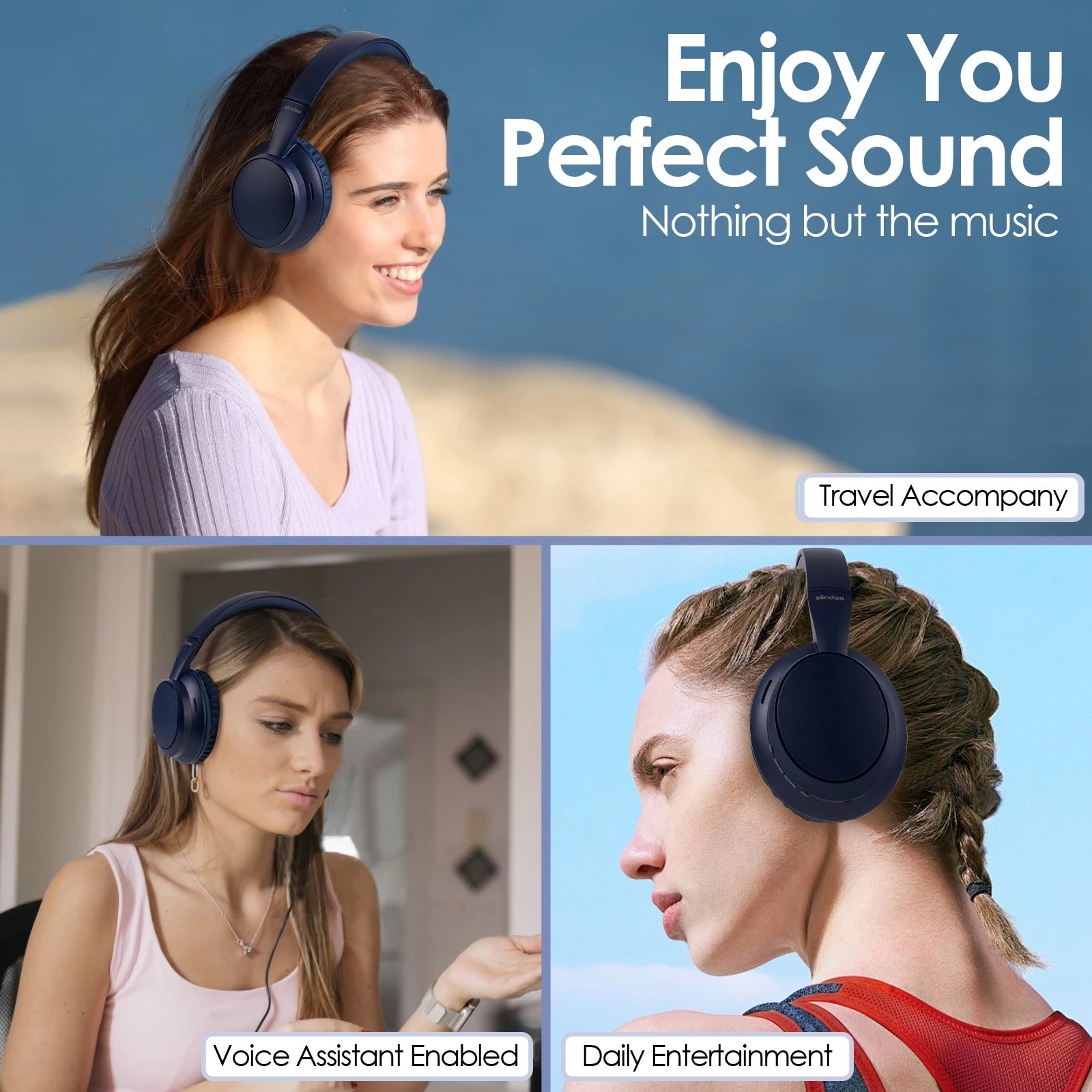 【ADJUSTABLE AND PORTABLE DESIGN】Adjustable headband are ergonomic design and ultra-soft ear cups, Bluetooth headphones provide a comfortable around-ear fit. Foldable design makes it easy for you to take the headphones whenever they go. Perfect for on-line courses, classes, movies, etc.