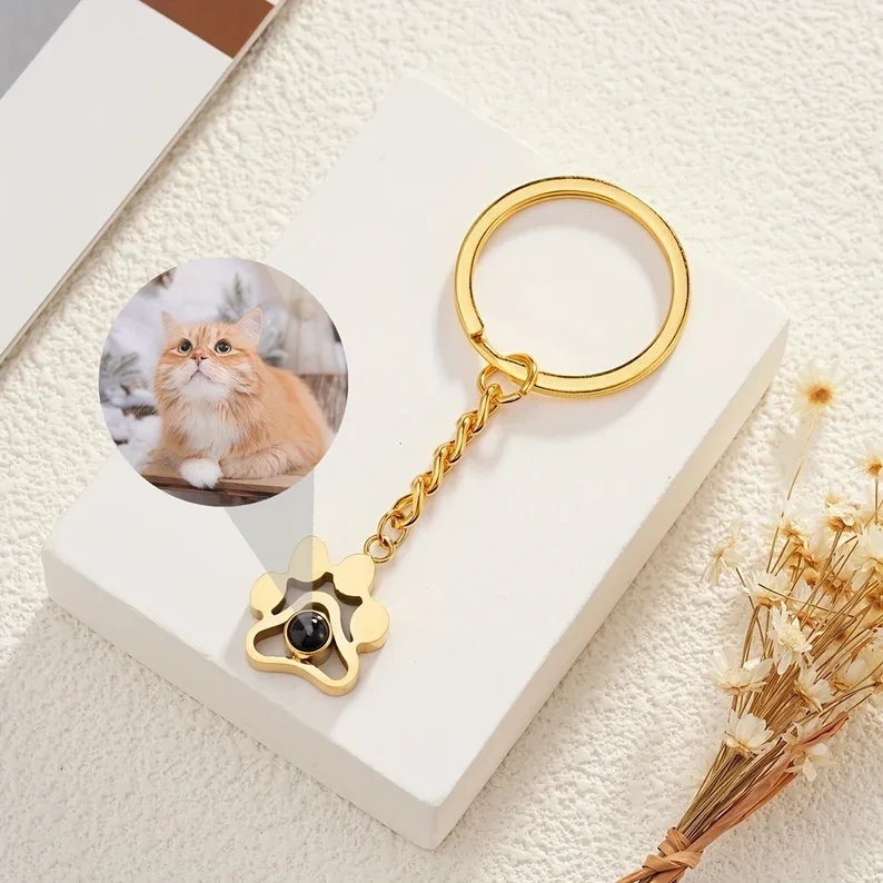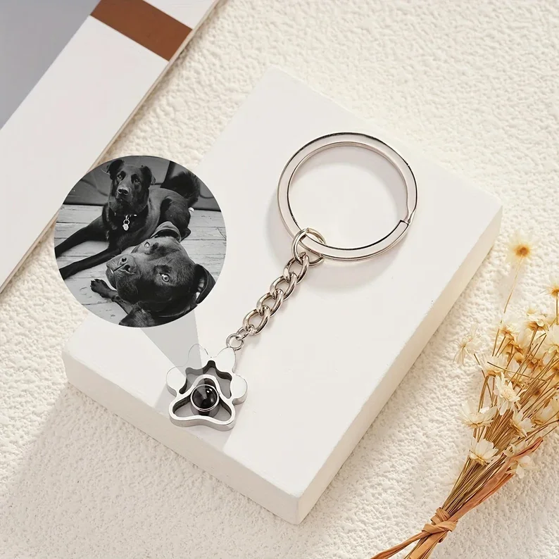 Stainless Projection Photo Keychain Custom Name Keychain for Him Personalized Text Keychain with Photo Inside Best Gift for Mom