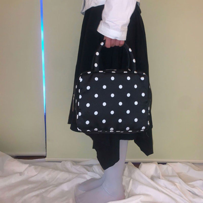 1. Colors: Black polka – dot handbag, Coffee – colored polka – dot handbag