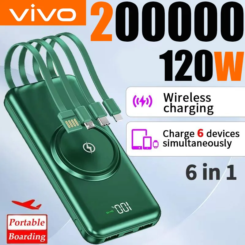 VIVO 200000mAh Power Bank Wireless Charging Power Bank Portable Mobile Power Digital Display 4 Wire For iPhone Samsung Huawei