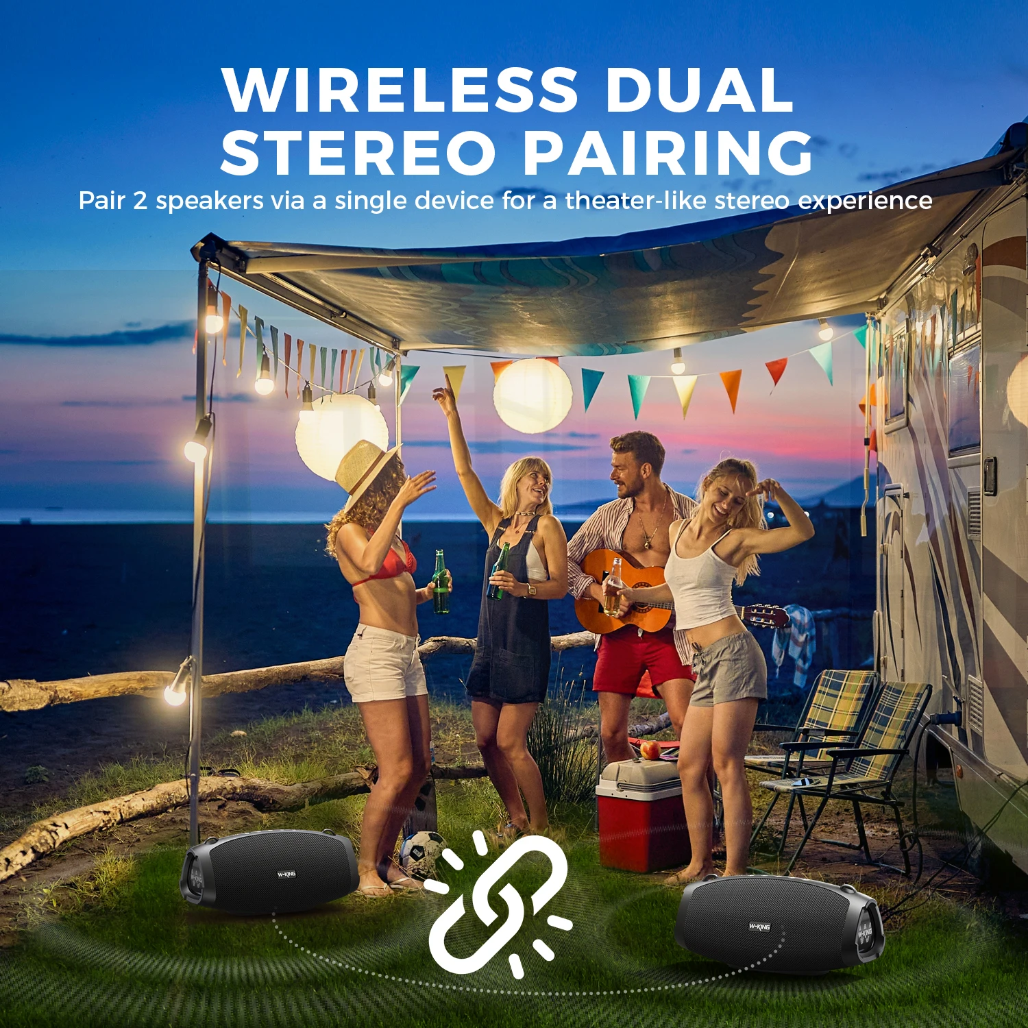 BLUETOOTH 5.0 & 140W HI-FI STEREO SOUND:Premium Bluetooth 5.0 Portable Speakers Bluetooth Wireless provides an incredible 100ft wireless range, faster Bluetooth connection and more stable signal transmission. Connect 2 W-KING X10 portable outdoor bluetooth speakers loud via Bluetooth to form a wireless left and right channel system, amplify your listening experience to epic levels for a great rock party with double the bass (X10 and X10-1 can’t be paired).