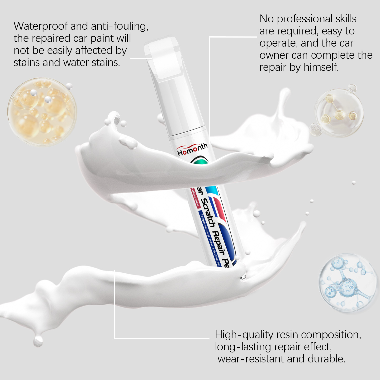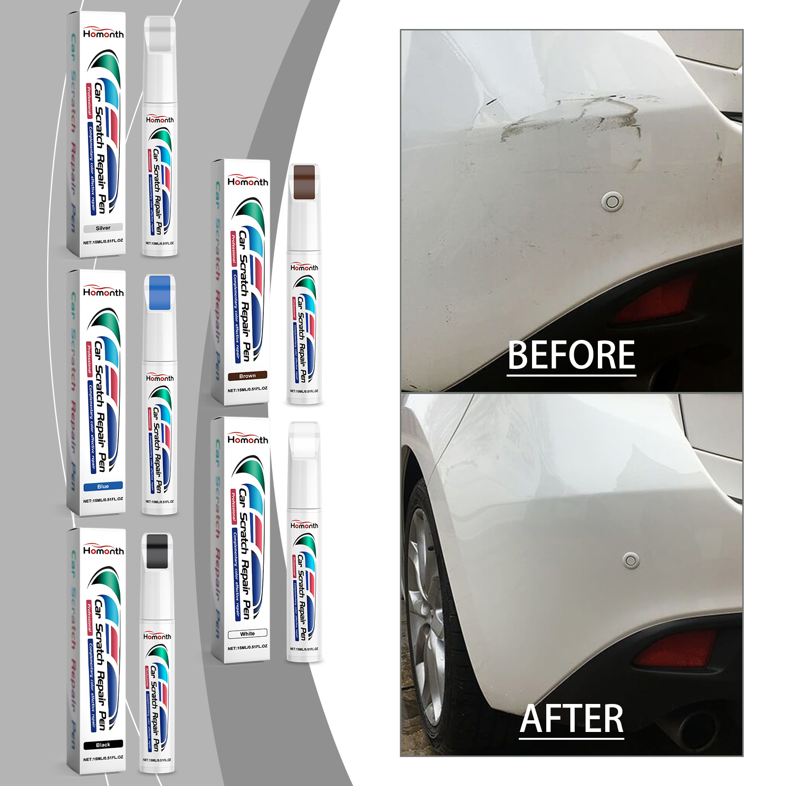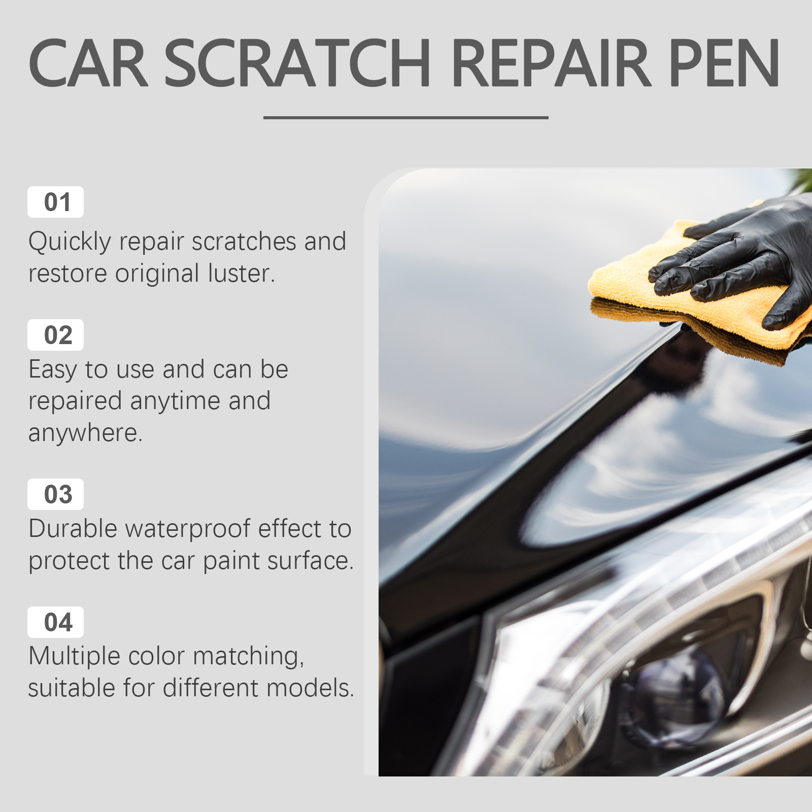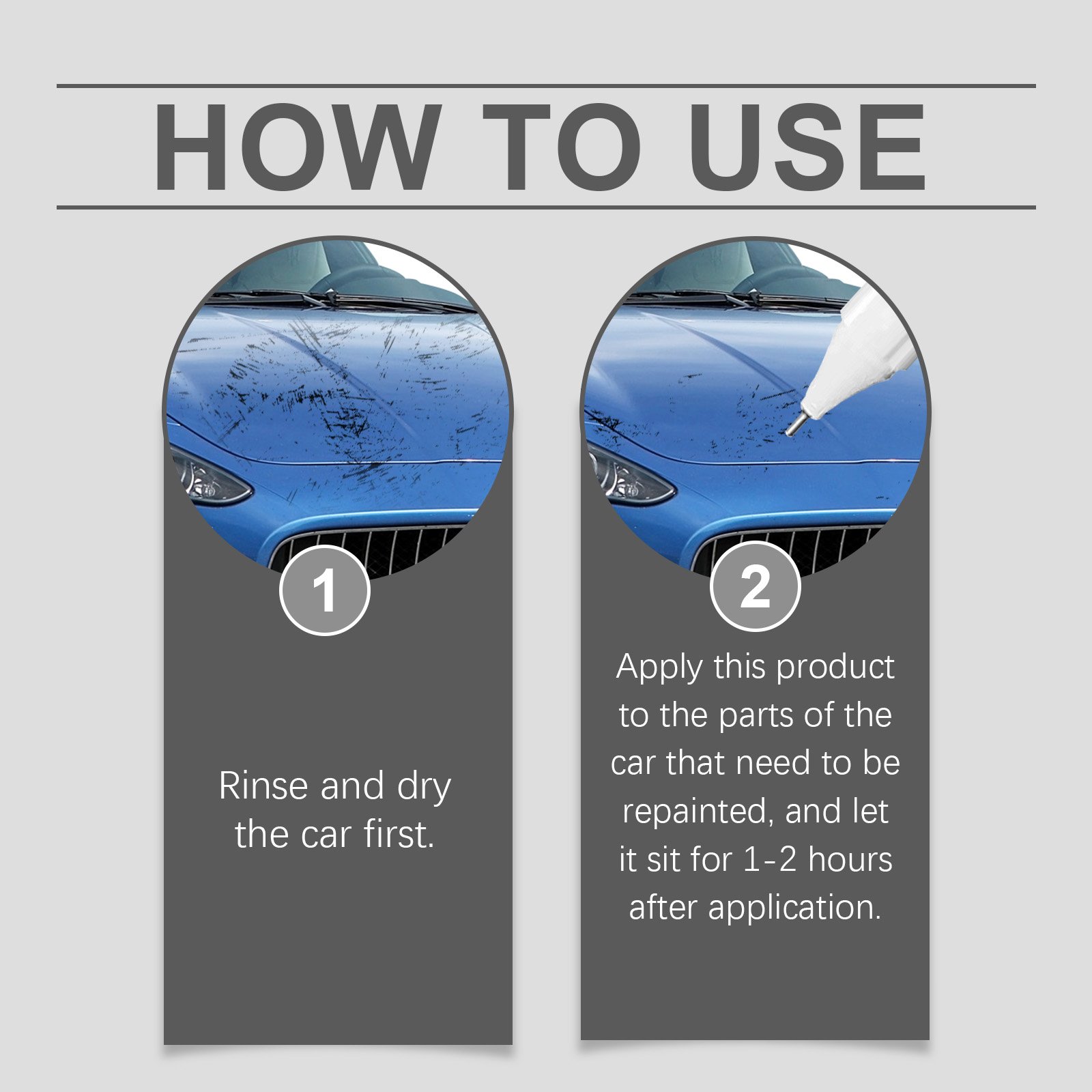 Our car scratch repair pens contain iron oxide and silica. It can help restore the color of the car and make your car look brand new. The way to use it is very simple: wash the car and dry it first. Apply the product to the parts of the car that need to be repainted, and let it sit for 1-2 hours after application. And can repair the surface damage of the car’s ability to make your car look more beautiful.